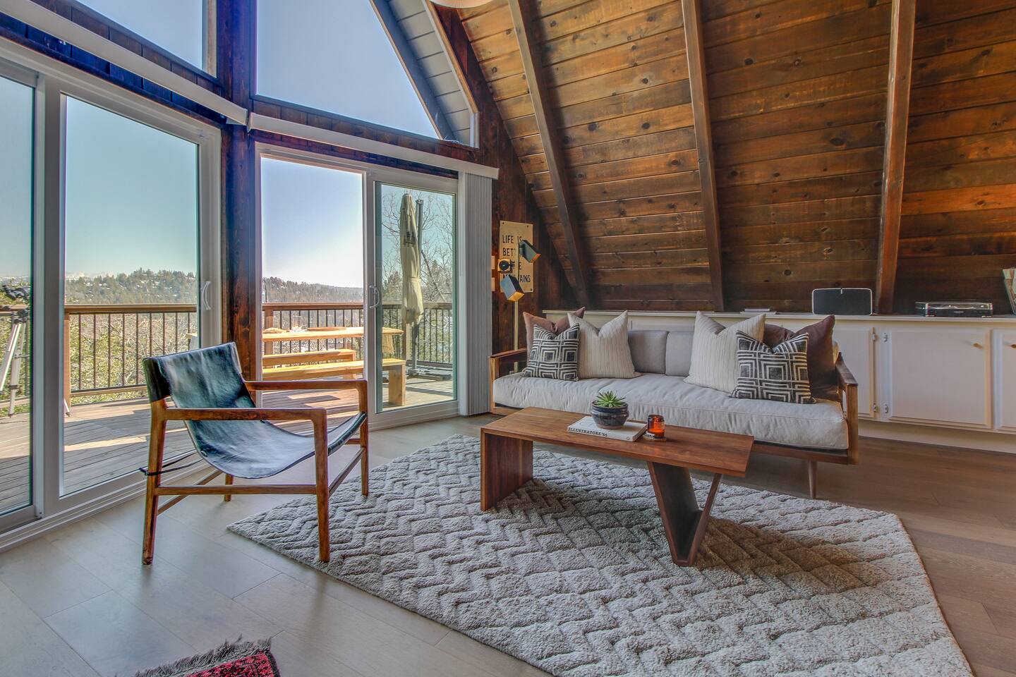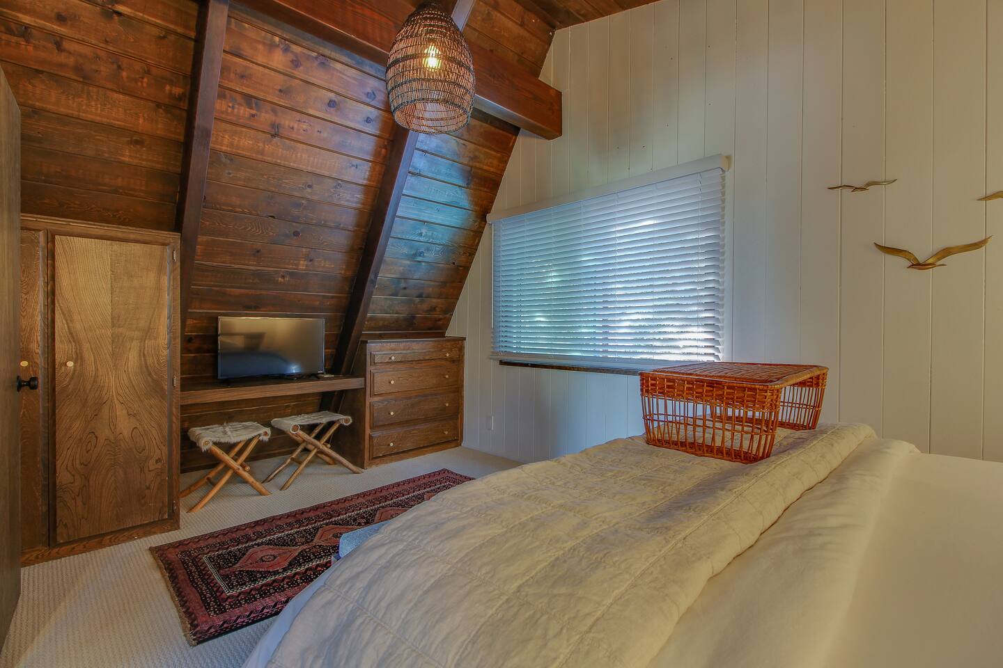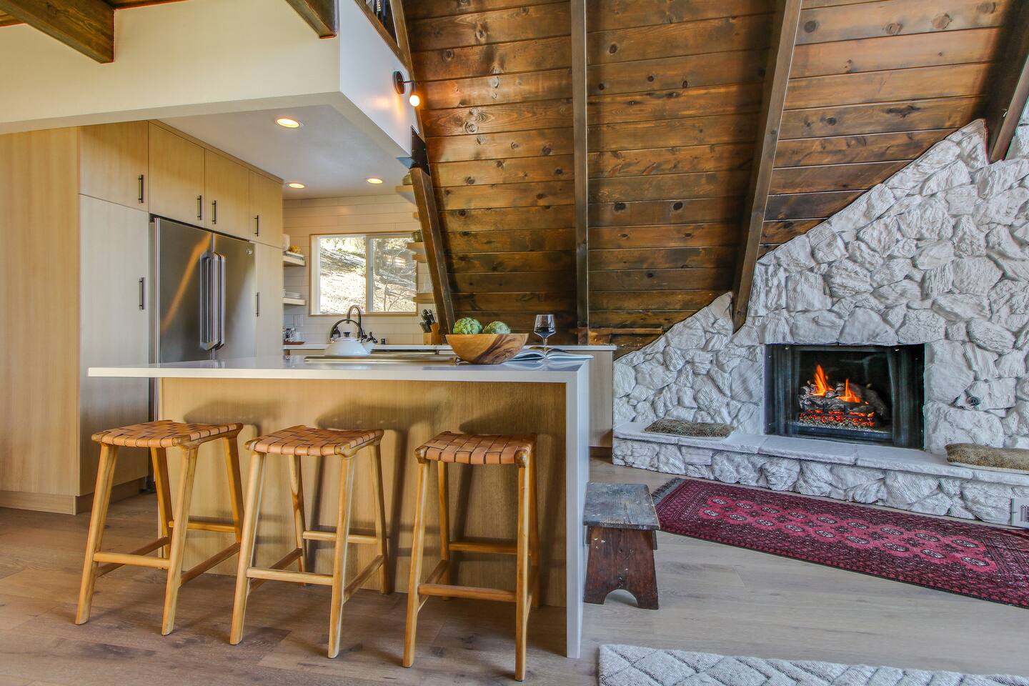 Roots Mountain House is a modern A-Frame escape with handcrafted furnishings and vintage touches. The open-concept living, dining, and kitchen area features stunning floor-to-ceiling windows with breathtaking views. With three stylish levels, there's plenty of space to relax and unwind. Enjoy comfort, design, and nature all in one place. Pet friendly with a $50 fee per pet—because your furry friends deserve a mountain escape too!