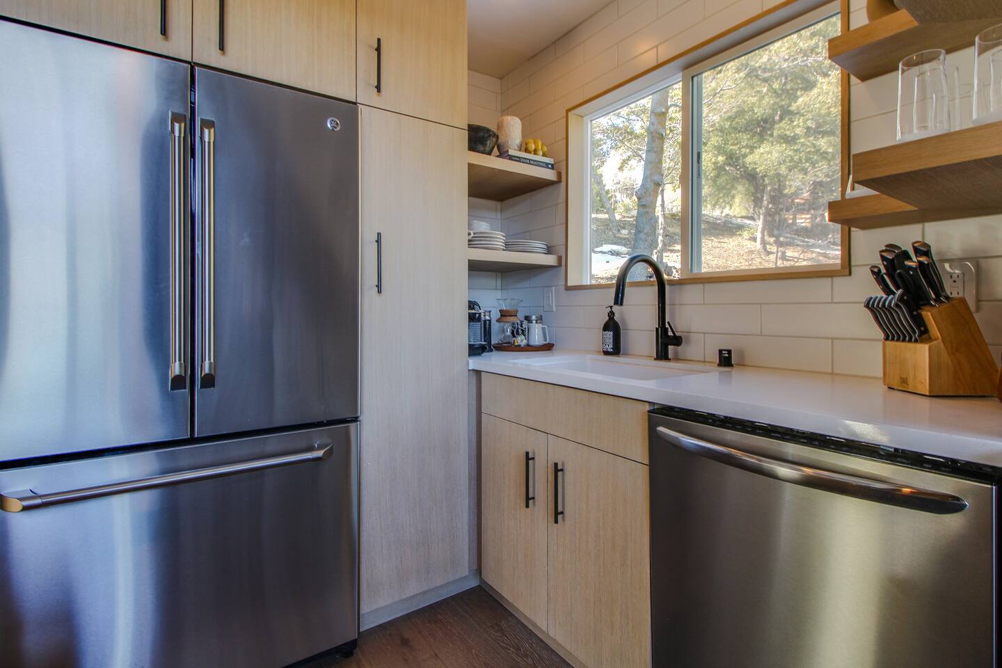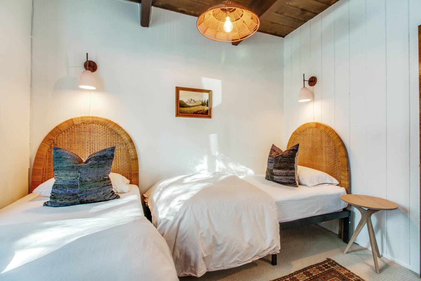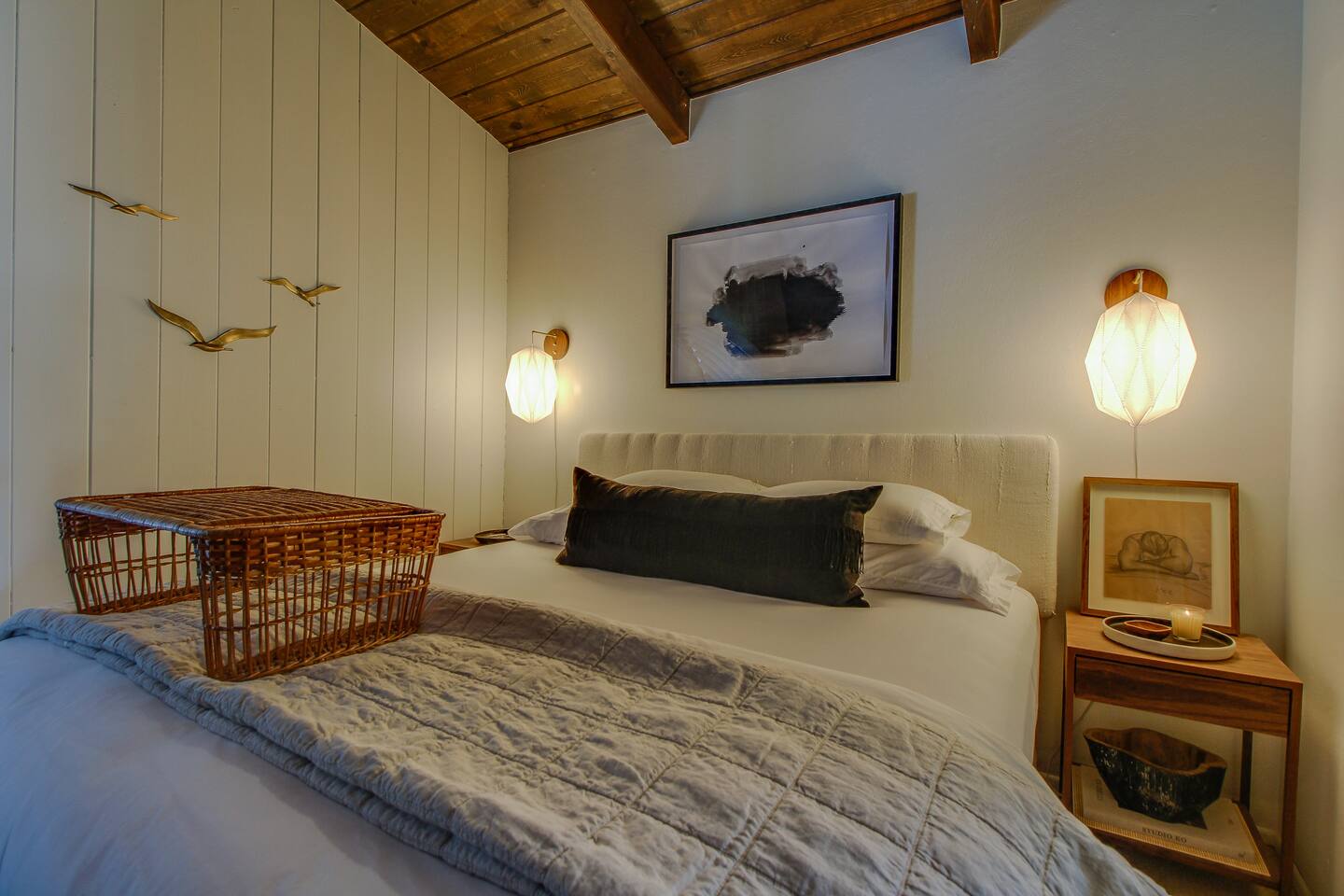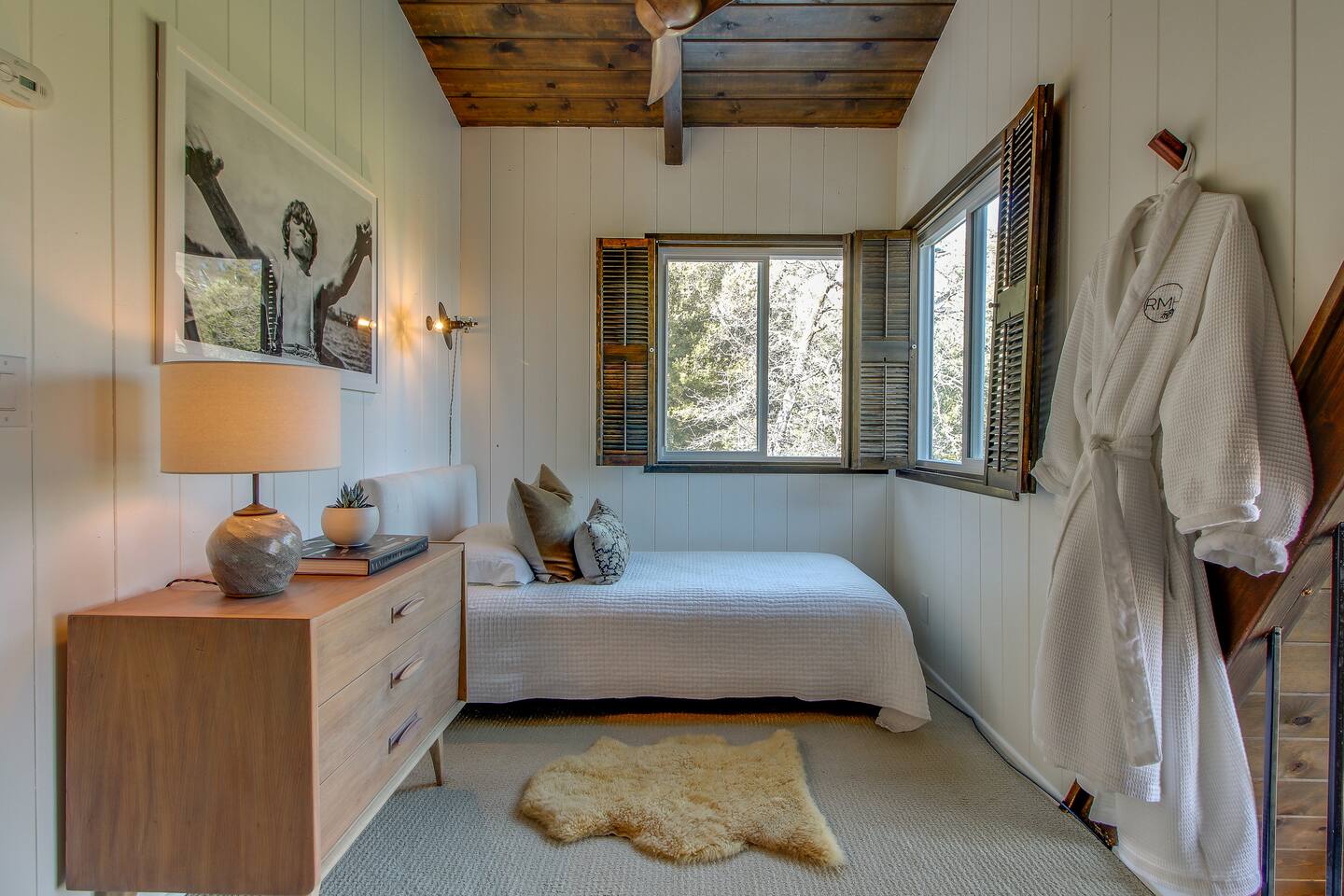 Roots Mountain House is a modern A-Frame escape with handcrafted furnishings and vintage touches. The open-concept living, dining, and kitchen area features stunning floor-to-ceiling windows with breathtaking views. With three stylish levels, there's plenty of space to relax and unwind. Enjoy comfort, design, and nature all in one place. Pet friendly with a $50 fee per pet—because your furry friends deserve a mountain escape too!