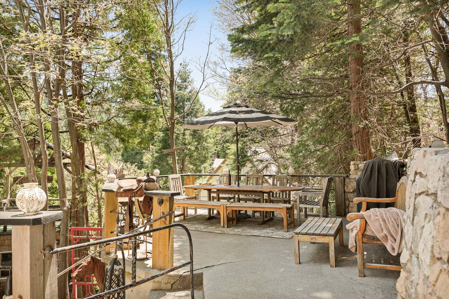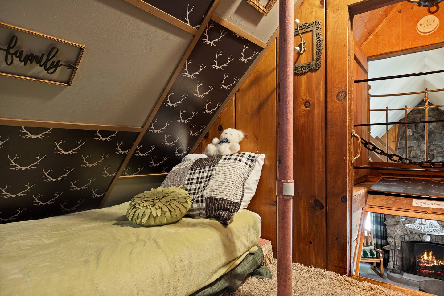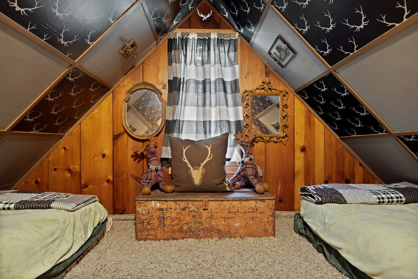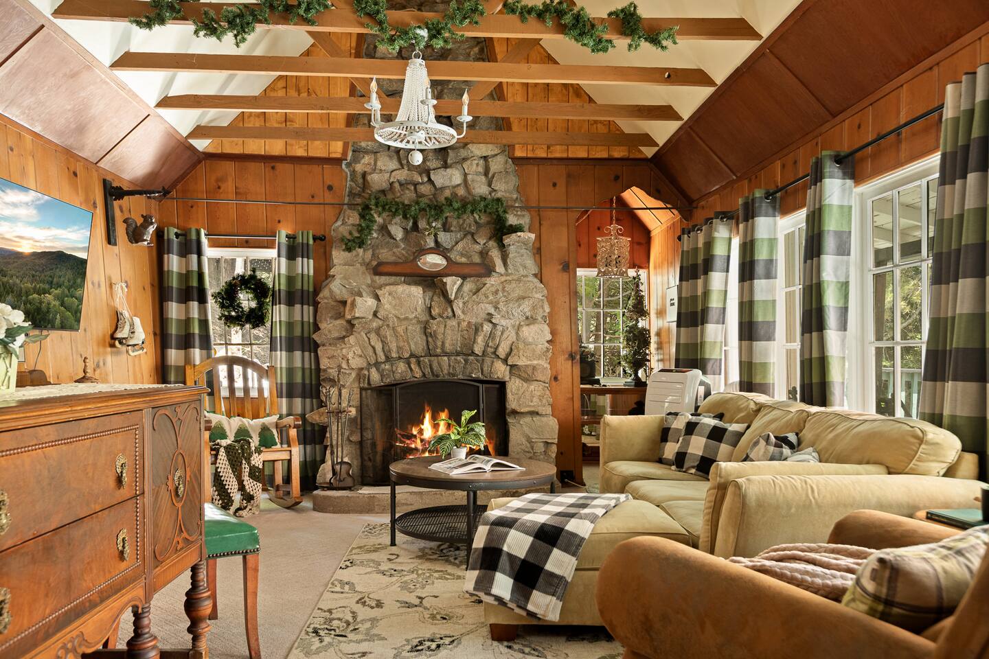 A whimsical, nostalgic cabin tucked among the pines of Twin Peaks — brimming with charm, character, and everything you need for a cozy forest escape. 🍳 Full Kitchen >>>> Fully equipped with stove, oven, fridge, and cookware >>>>Vintage hardware and sink >>>>Perfect for whipping up hearty breakfasts or evening snacks 🛏️ Bedrooms 4 unique sleeping spaces: 🌴 Outdoor Palapa: Twin beds under a covered palapa for a magical “sleep outside” experience (Bedroom 4) 🪜 Loft Bedroom: A tucked-away loft — kids and adventurous adults love it! (Bedroom 3) 🛌 Cozy Main Bedrooms: Warm, rustic rooms with comfy beds and nostalgic cabin touches 🛋️ Living Room >>>>Quirky, cozy gathering space with vintage décor >>>>Curl up with a book or play board games by the window >>>>Inviting spot to relax after a day in the woods 🌲 Outdoors 🔥 BBQ Grill: Fire up dinner under the stars 💤 Hammock: Sway away your worries in the fresh mountain air 🏕️ Gazebo & Patio: Lounge, dine, or enjoy drinks surrounded by nature 🌳 Deck & Trails: Spacious deck for sunbathing and winding mini trails through your private forest retreat ✨ Why You’ll Love It A peaceful, one-of-a-kind mountain hideaway full of character and playful charm — perfect for couples, families, or friends craving something delightfully different.