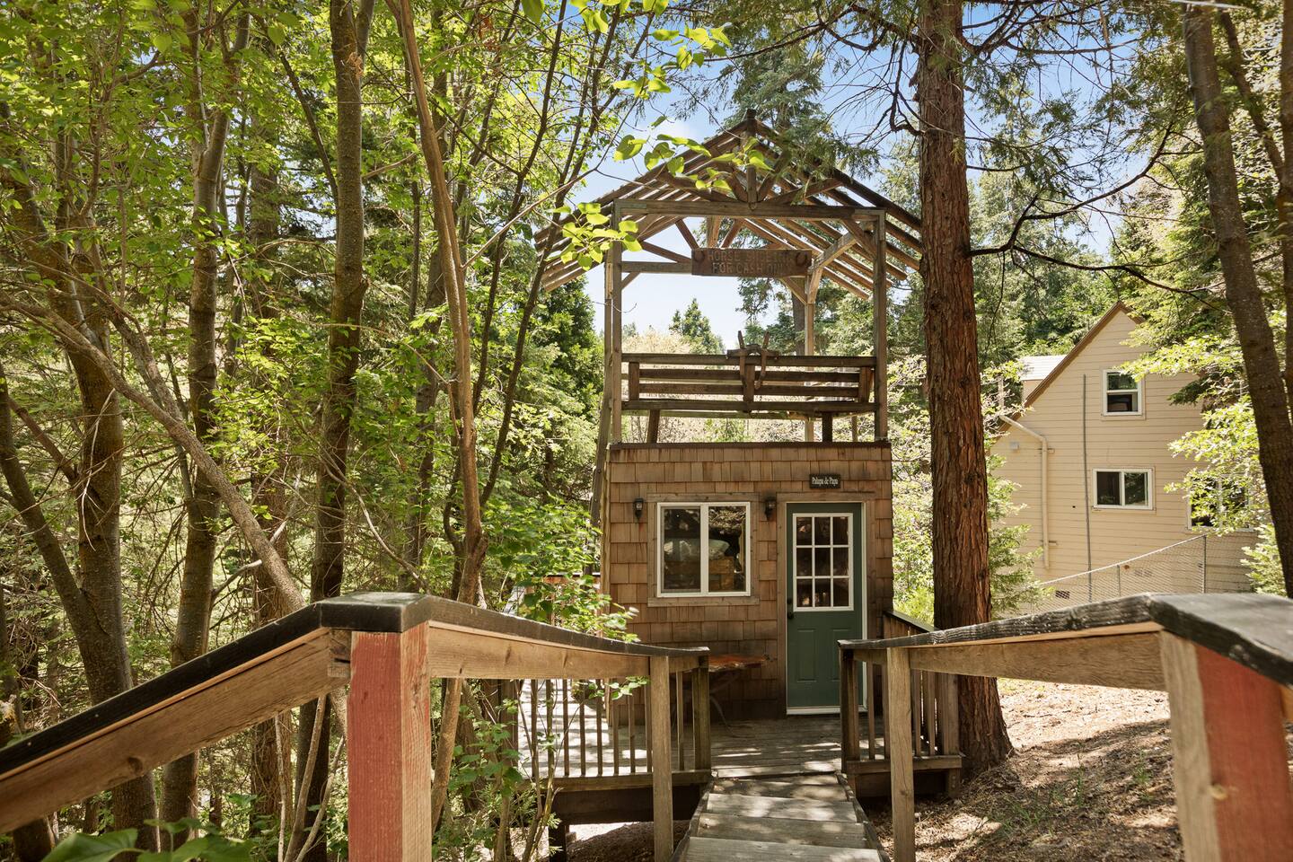 Welcome to the Crooked Cottage! Escape to this charming, quirky cabin tucked in the woods of Twin Peaks. With original hardware and a crooked-home vibe, it’s full of character and nostalgia. Enjoy a totally private outdoor space with winding mini trails and a cozy palapa featuring twin beds—perfect for a night “outside.” A peaceful, one-of-a-kind retreat surrounded by towering trees and mountain air.