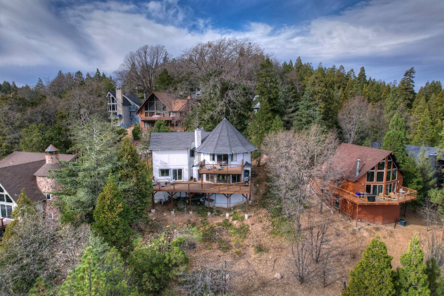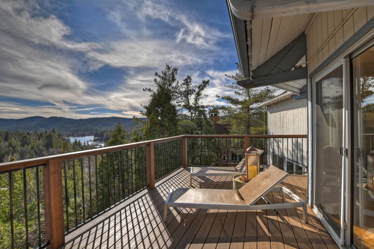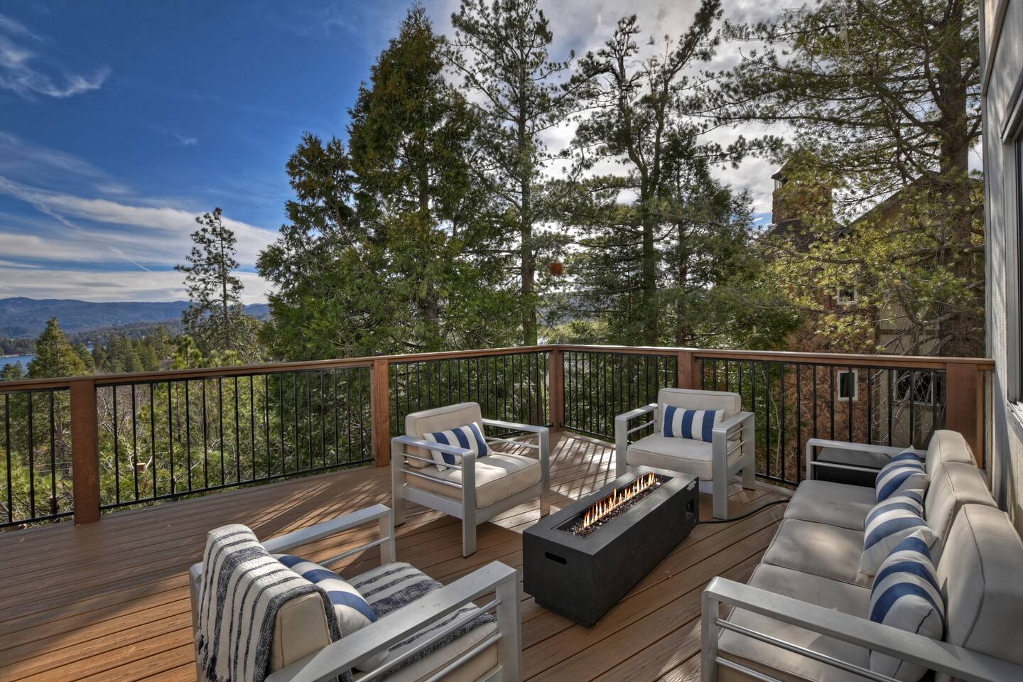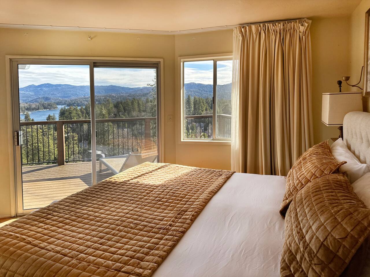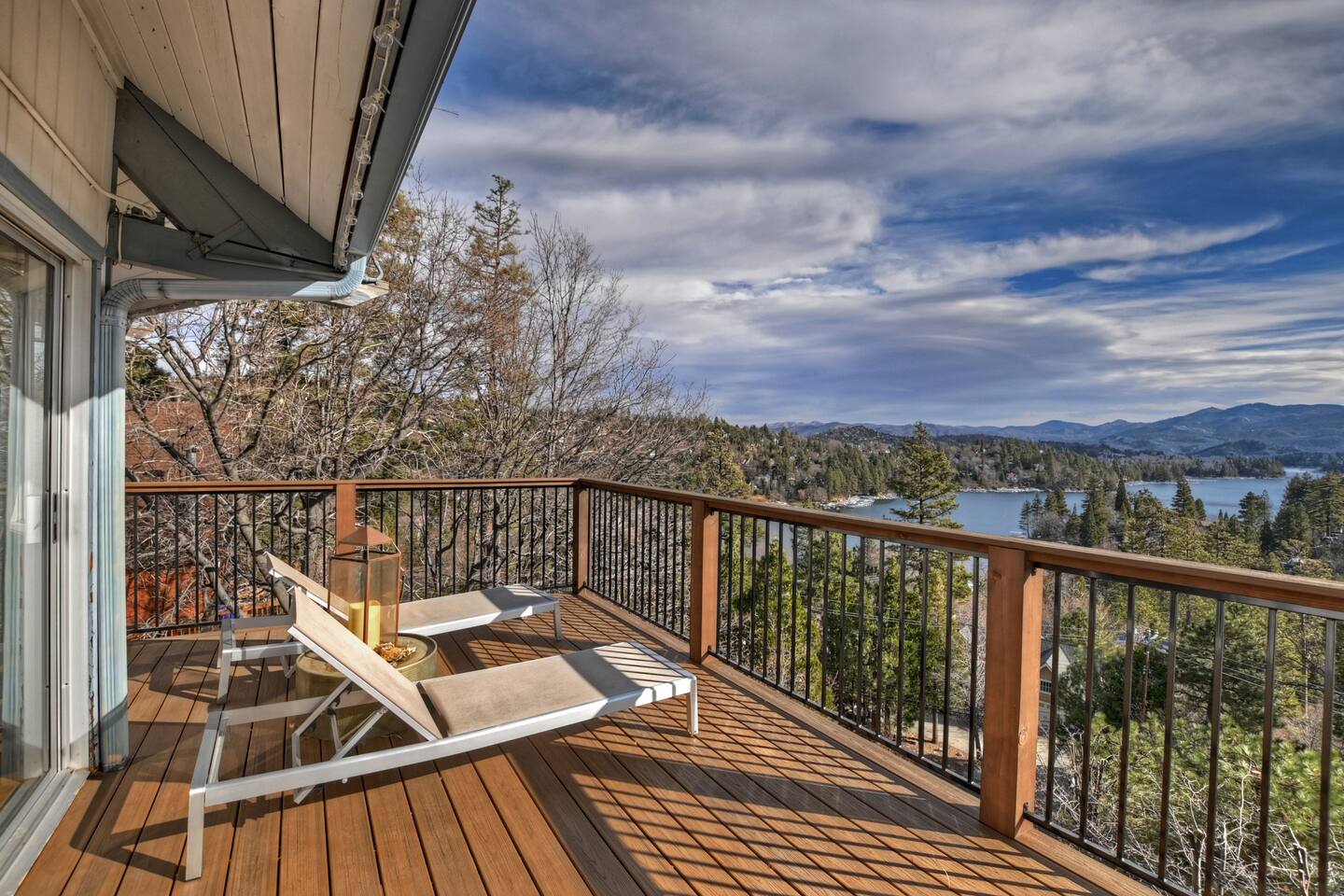 Main Living Space – The Iconic Octagon Cabin Enter into the original octagon cabin, full of charm and natural light Gourmet kitchen with stainless steel appliances, gas stove, dishwasher, and a dedicated coffee bar Dining area features a custom live-edge timber table that seats up to 10, with sweeping panoramic views of Lake Arrowhead Spacious living room with large sectional, Smart TV, and even more lake views Cozy wood-burning fireplace adds warmth and ambiance Convenient powder room located on this level Expansive Outdoor Deck Deck stretches the full length of the main level Enjoy lounge seating and a BBQ grill for outdoor cooking Perfect for soaking in the stunning lake views or entertaining guests Outdoor dining set arriving summer season Vintage Charm Meets Modern Comfort Custom staircase and architectural details throughout Sleeps 10 comfortably across 4 bedrooms 3 full bathrooms for convenience A harmonious blend of Hollywood history and contemporary luxury Whether you're relaxing on the deck, sharing meals with family and friends, or cozying up by the fire, the Ruth Hussey Estate offers a unique escape that captures the beauty and spirit of Lake Arrowhead. The lower bedroom accessed from the original circular staircase is a double large room, offering a king and queen beds, seating and TV area, also a full bathroom on this level. Upstairs top level, is the primary bedroom with a king bed, TV and YES more lake views, the private deck with chaise lounges to enjoy the breathtaking sight of the lake. The bunk room with custom built-in timber twins will delight anyone. One more bedroom with a queen bed and TV. Bathroom and powder room on this level. Garage parking for 2 and driveway 2 PLEASE do not BLOCK access road or park on any other area. Fines can be imposed by the county min $1000 and are the responsibility of the guests to pay.
