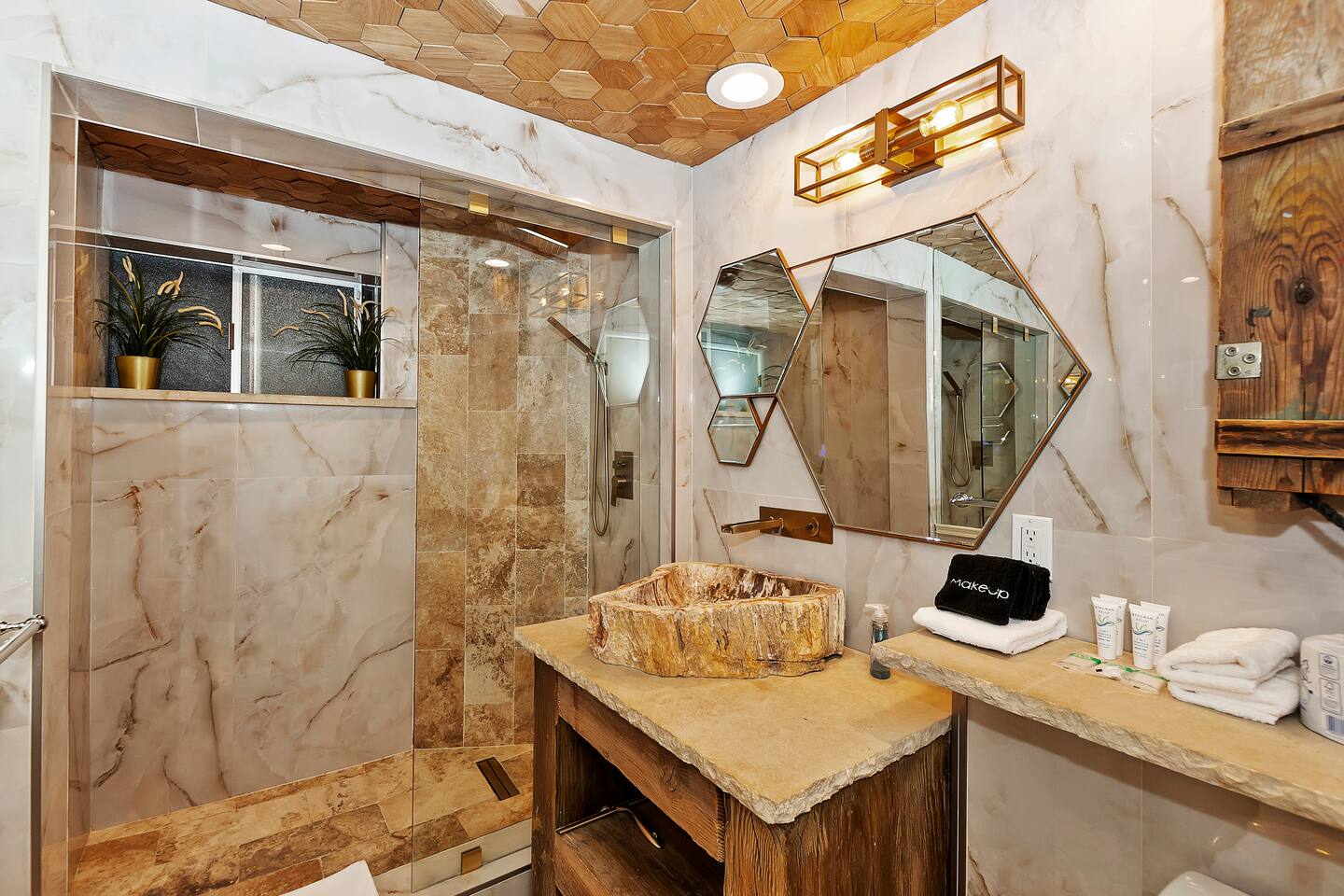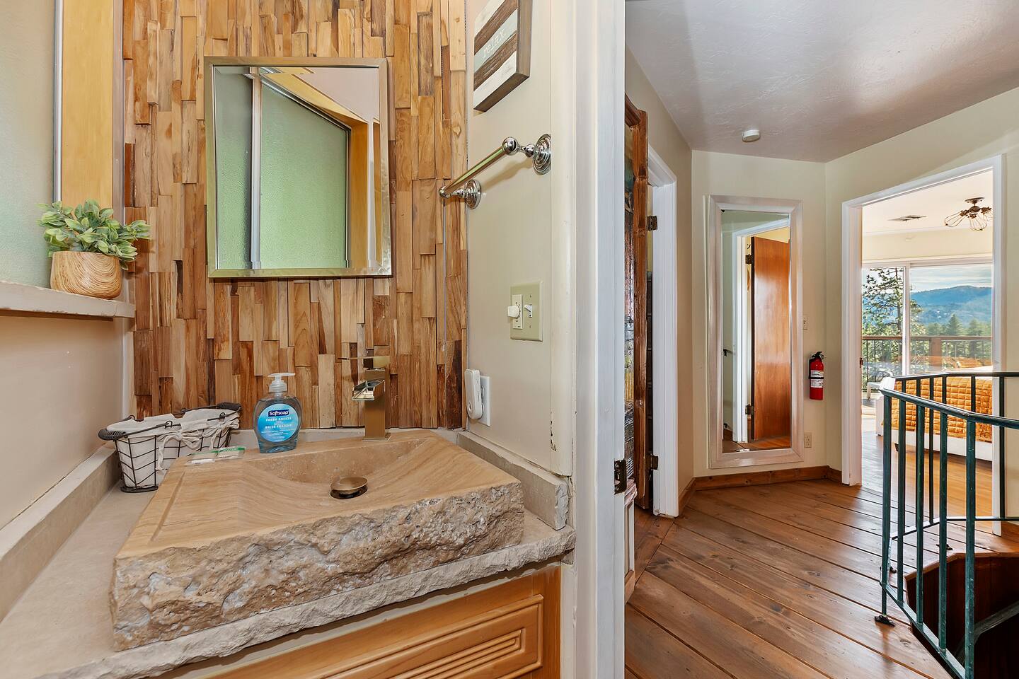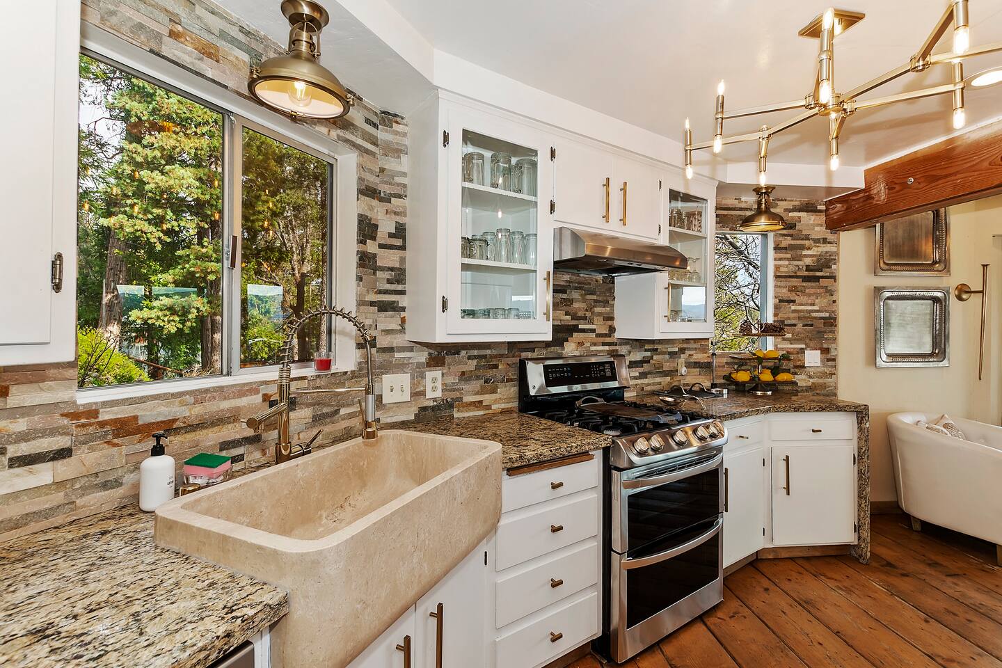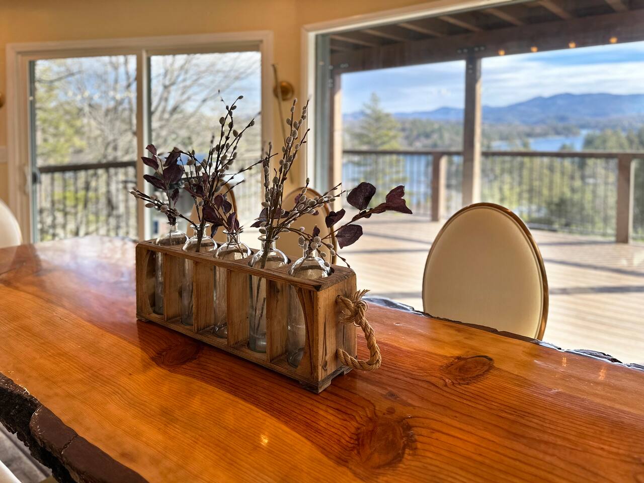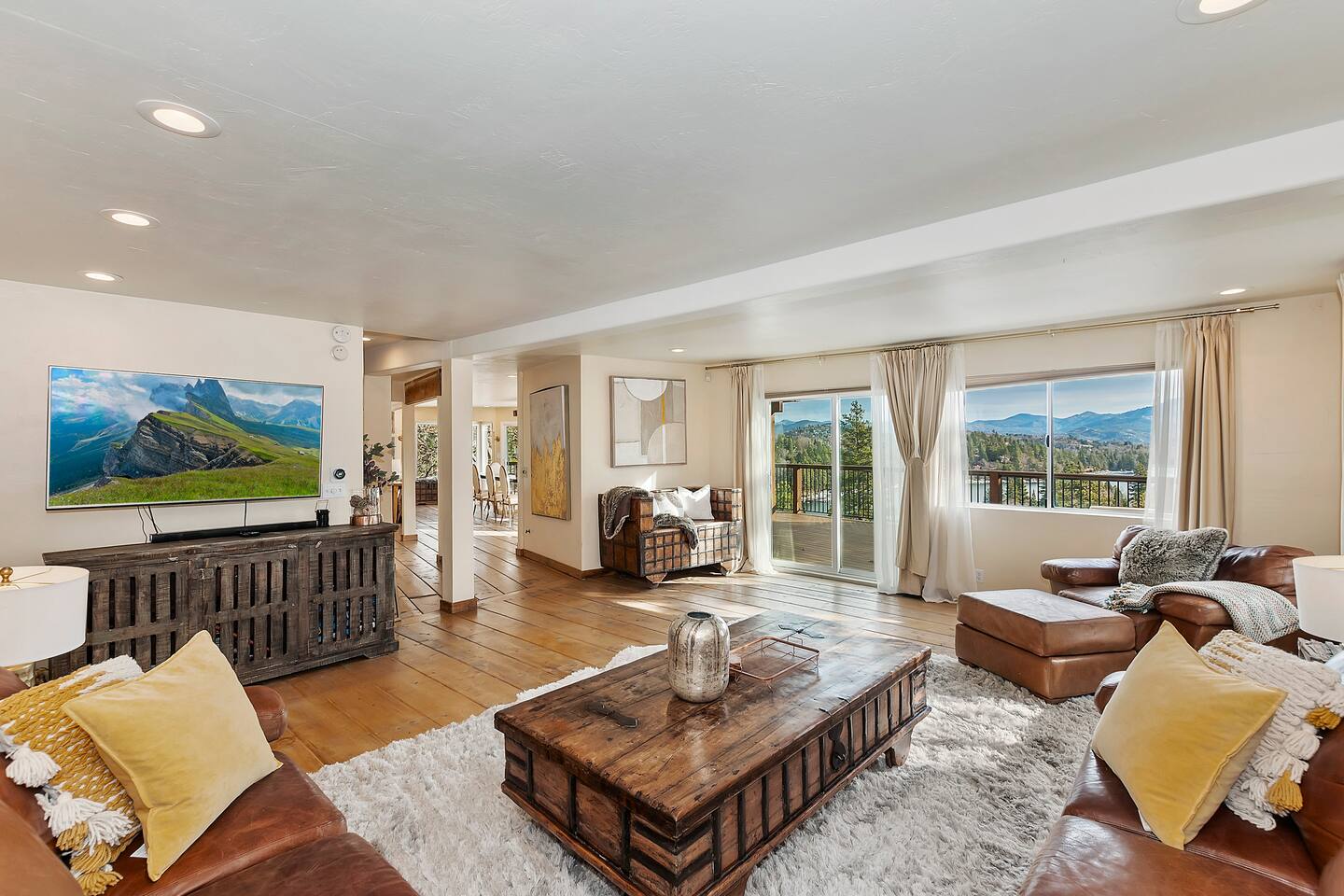 Main Living Space – The Iconic Octagon Cabin Enter into the original octagon cabin, full of charm and natural light Gourmet kitchen with stainless steel appliances, gas stove, dishwasher, and a dedicated coffee bar Dining area features a custom live-edge timber table that seats up to 10, with sweeping panoramic views of Lake Arrowhead Spacious living room with large sectional, Smart TV, and even more lake views Cozy wood-burning fireplace adds warmth and ambiance Convenient powder room located on this level Expansive Outdoor Deck Deck stretches the full length of the main level Enjoy lounge seating and a BBQ grill for outdoor cooking Perfect for soaking in the stunning lake views or entertaining guests Outdoor dining set arriving summer season Vintage Charm Meets Modern Comfort Custom staircase and architectural details throughout Sleeps 10 comfortably across 4 bedrooms 3 full bathrooms for convenience A harmonious blend of Hollywood history and contemporary luxury Whether you're relaxing on the deck, sharing meals with family and friends, or cozying up by the fire, the Ruth Hussey Estate offers a unique escape that captures the beauty and spirit of Lake Arrowhead. The lower bedroom accessed from the original circular staircase is a double large room, offering a king and queen beds, seating and TV area, also a full bathroom on this level. Upstairs top level, is the primary bedroom with a king bed, TV and YES more lake views, the private deck with chaise lounges to enjoy the breathtaking sight of the lake. The bunk room with custom built-in timber twins will delight anyone. One more bedroom with a queen bed and TV. Bathroom and powder room on this level. Garage parking for 2 and driveway 2 PLEASE do not BLOCK access road or park on any other area. Fines can be imposed by the county min $1000 and are the responsibility of the guests to pay.