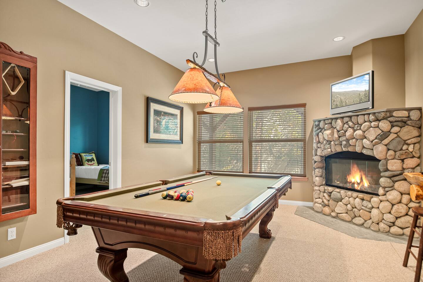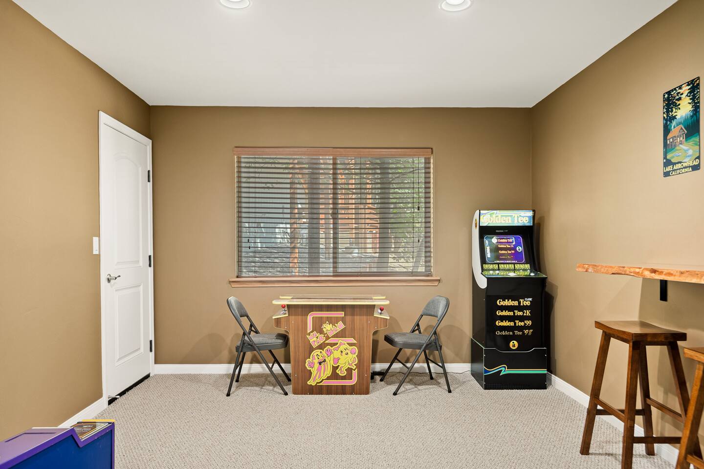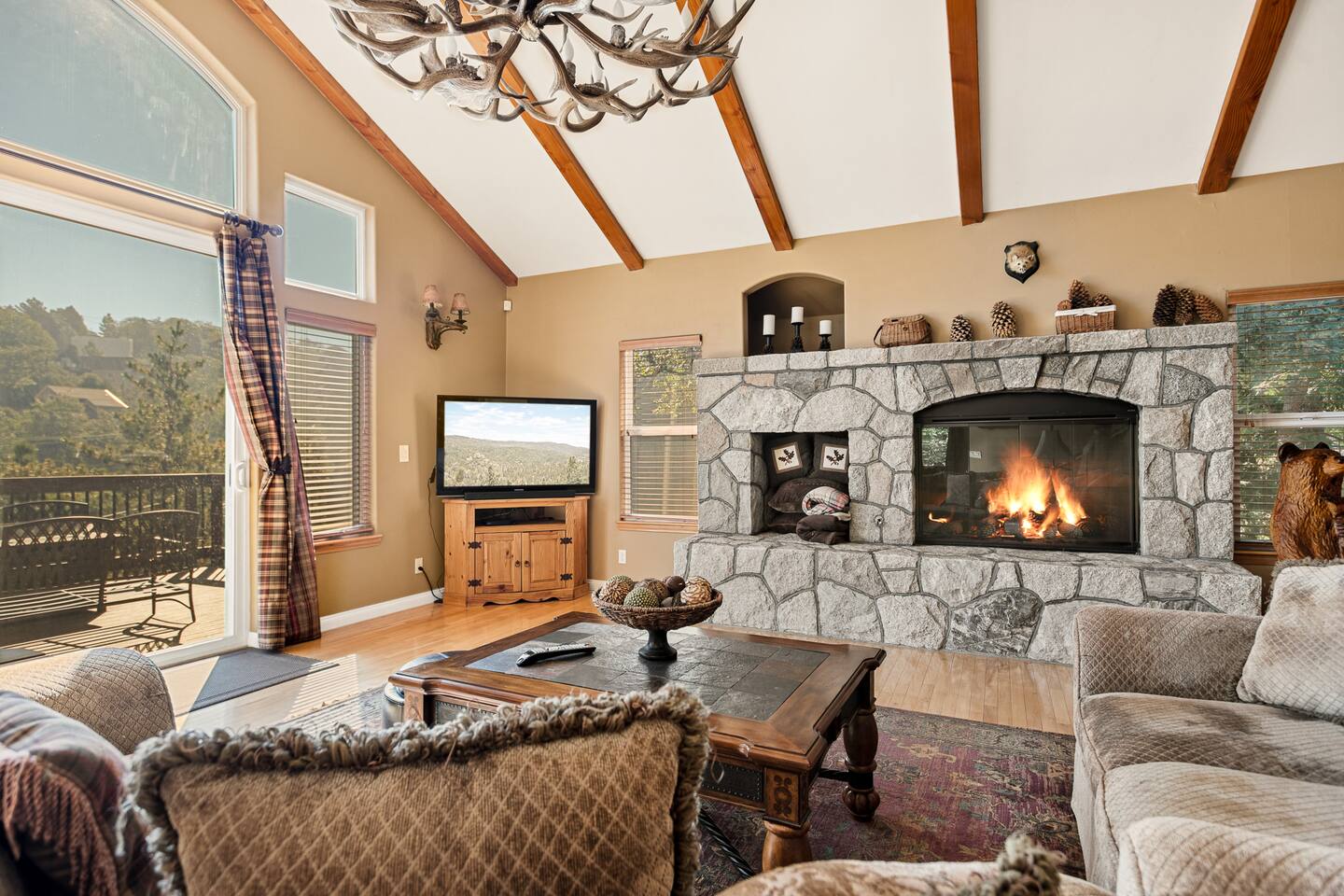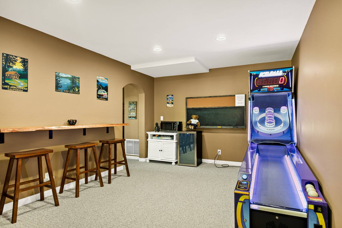 Every corner of the home is designed for comfort and connection: · 5 bedrooms, including a master suite with jetted tub + walk-in shower · Cozy living room with fireplace for relaxed evenings · Pool table room with its own fireplace · Family room with large TV · Game room with Ice Ball, Pac-Man, and arcade golf · Fully equipped kitchen for group meals · Two expansive decks with seating, BBQ, and outdoor fireplace The Bedrooms Each bedroom is spacious and thoughtfully furnished, with soft bedding and plenty of room to recharge after a day in the mountains. Location Perks Nestled in the pines, you’ll be just minutes from all the best of Lake Arrowhead: · Lake Arrowhead Village for shopping, dining & events (10 min) · Hiking trails and outdoor adventures nearby · Short drive to SkyPark at Santa’s Village (15 min) · 30 minutes to Snow Valley Mountain Resort for skiing & boarding Backyard Vibes Two oversized decks provide the perfect spot for group barbecues, evening cocktails, or cozy fireside chats under the mountain sky. ✅ The Perks · 5 bedrooms, 3.5 bathrooms — room for everyone · Pool table + arcade-style game room for endless entertainment · Multiple fireplaces indoors & outdoors · Expansive decks with BBQ + outdoor fireplace · Close to Lake Arrowhead Village, SkyPark, and Snow Valley