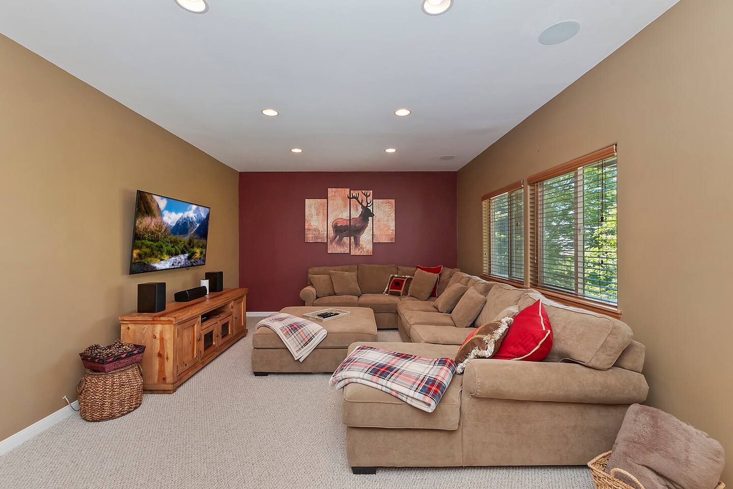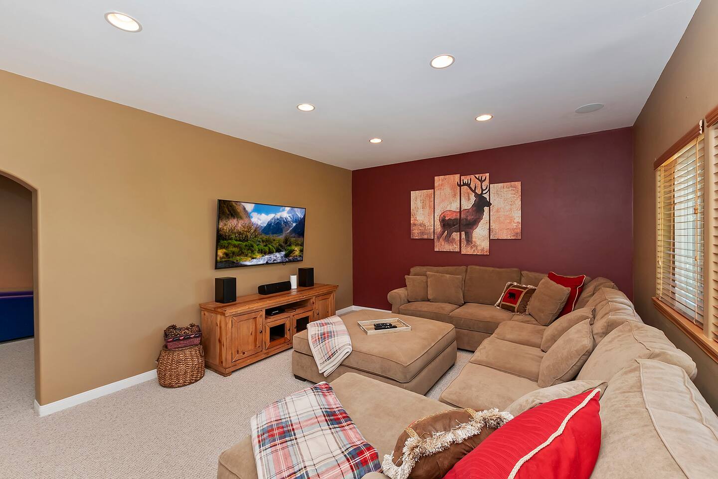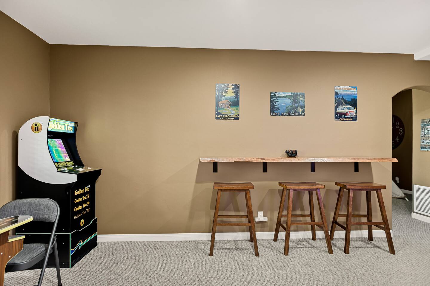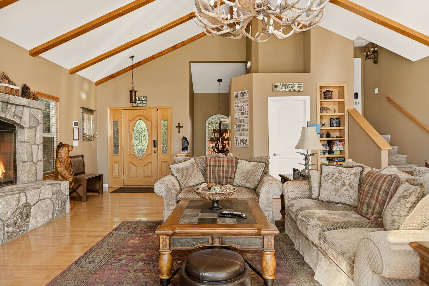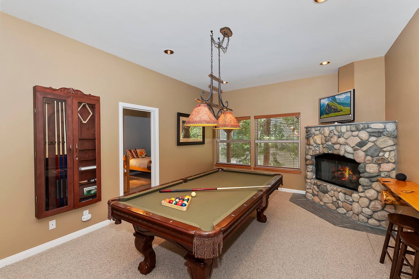 Every corner of the home is designed for comfort and connection: · 5 bedrooms, including a master suite with jetted tub + walk-in shower · Cozy living room with fireplace for relaxed evenings · Pool table room with its own fireplace · Family room with large TV · Game room with Ice Ball, Pac-Man, and arcade golf · Fully equipped kitchen for group meals · Two expansive decks with seating, BBQ, and outdoor fireplace The Bedrooms Each bedroom is spacious and thoughtfully furnished, with soft bedding and plenty of room to recharge after a day in the mountains. Location Perks Nestled in the pines, you’ll be just minutes from all the best of Lake Arrowhead: · Lake Arrowhead Village for shopping, dining & events (10 min) · Hiking trails and outdoor adventures nearby · Short drive to SkyPark at Santa’s Village (15 min) · 30 minutes to Snow Valley Mountain Resort for skiing & boarding Backyard Vibes Two oversized decks provide the perfect spot for group barbecues, evening cocktails, or cozy fireside chats under the mountain sky. ✅ The Perks · 5 bedrooms, 3.5 bathrooms — room for everyone · Pool table + arcade-style game room for endless entertainment · Multiple fireplaces indoors & outdoors · Expansive decks with BBQ + outdoor fireplace · Close to Lake Arrowhead Village, SkyPark, and Snow Valley
