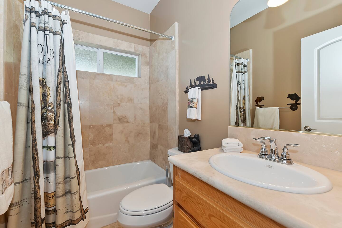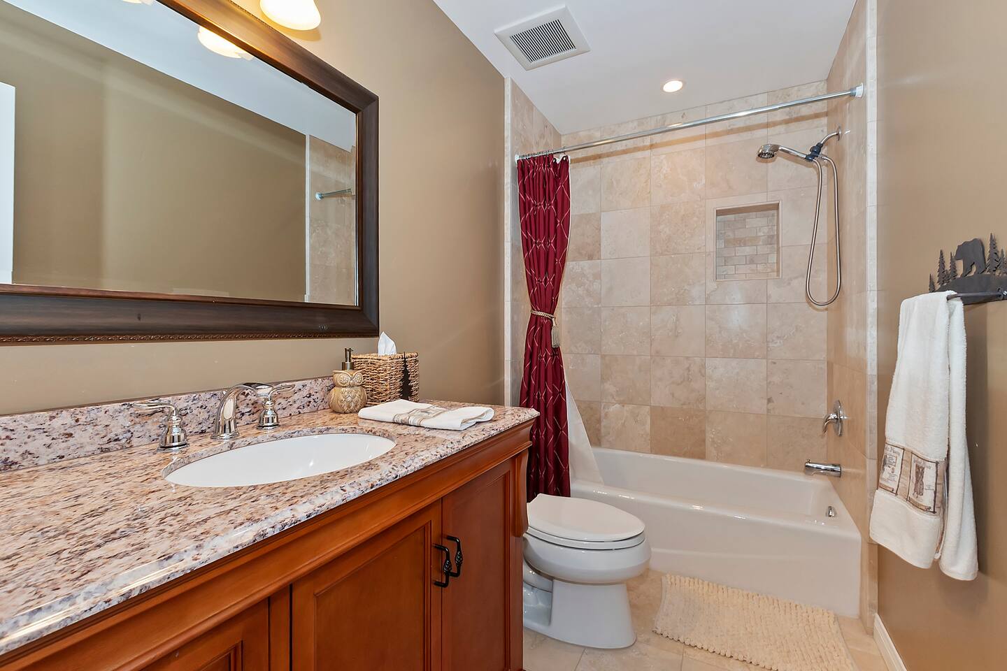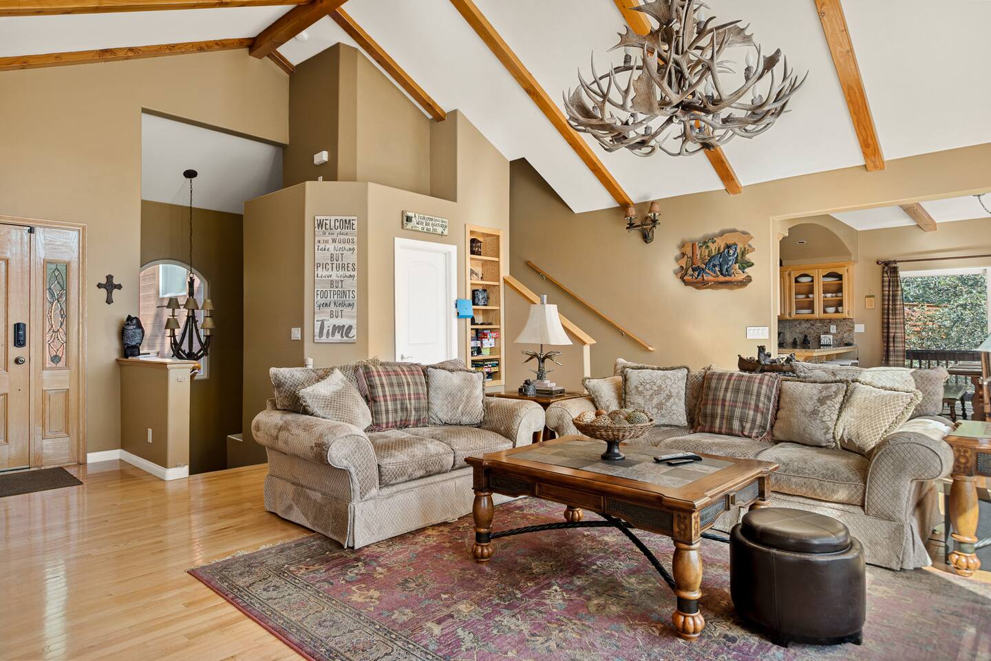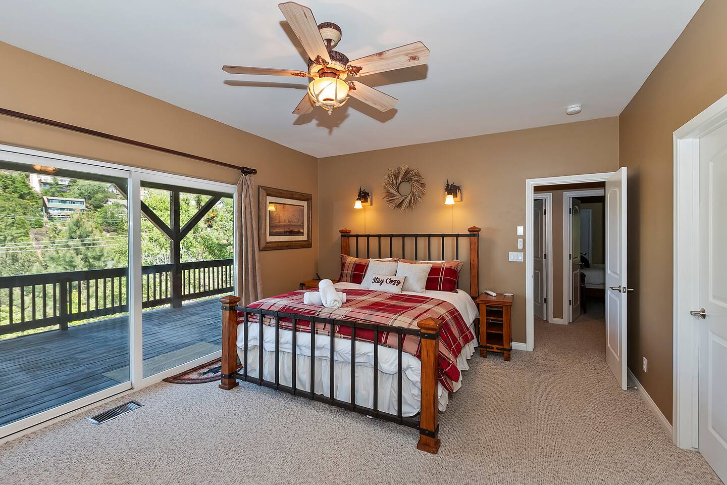 Every corner of the home is designed for comfort and connection: · 5 bedrooms, including a master suite with jetted tub + walk-in shower · Cozy living room with fireplace for relaxed evenings · Pool table room with its own fireplace · Family room with large TV · Game room with Ice Ball, Pac-Man, and arcade golf · Fully equipped kitchen for group meals · Two expansive decks with seating, BBQ, and outdoor fireplace The Bedrooms Each bedroom is spacious and thoughtfully furnished, with soft bedding and plenty of room to recharge after a day in the mountains. Location Perks Nestled in the pines, you’ll be just minutes from all the best of Lake Arrowhead: · Lake Arrowhead Village for shopping, dining & events (10 min) · Hiking trails and outdoor adventures nearby · Short drive to SkyPark at Santa’s Village (15 min) · 30 minutes to Snow Valley Mountain Resort for skiing & boarding Backyard Vibes Two oversized decks provide the perfect spot for group barbecues, evening cocktails, or cozy fireside chats under the mountain sky. ✅ The Perks · 5 bedrooms, 3.5 bathrooms — room for everyone · Pool table + arcade-style game room for endless entertainment · Multiple fireplaces indoors & outdoors · Expansive decks with BBQ + outdoor fireplace · Close to Lake Arrowhead Village, SkyPark, and Snow Valley