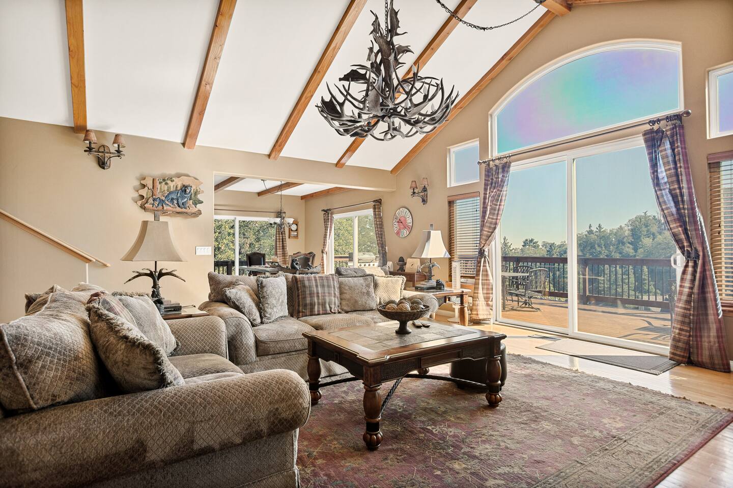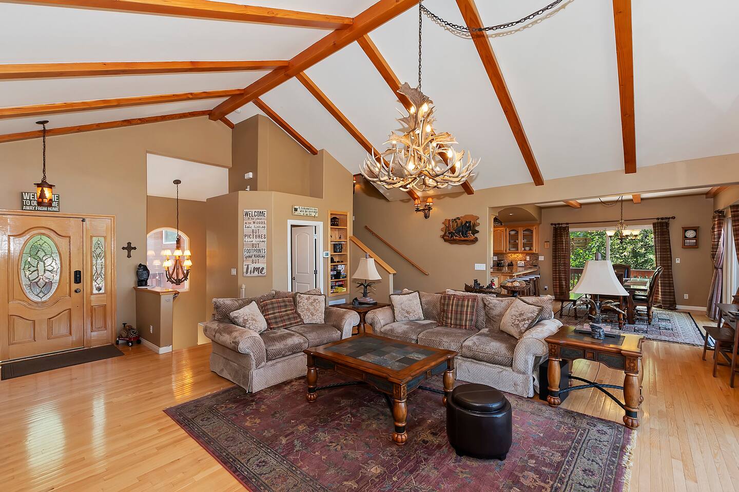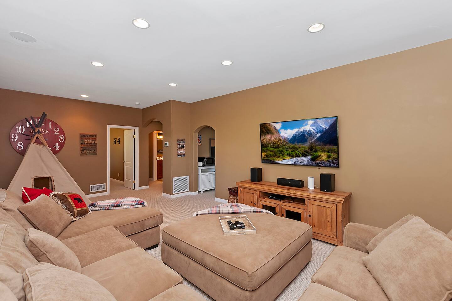 Welcome to the Klondike Retreat — a spacious 5 bedroom, 3.5 bath mountain retreat designed for families and groups to gather. With multiple living spaces, fireplaces throughout, and a full game room featuring Ice Ball, Pac-Man, and arcade golf, there’s fun for everyone. Outside, two large decks with a BBQ grill and outdoor fireplace set the stage for mountain evenings under the stars.