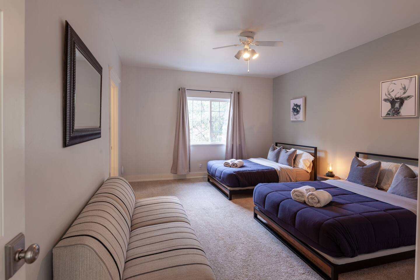 Welcome to your mountain escape—where style, comfort, and fun come together. This 3300 sq ft luxury home was designed for memorable family gatherings and restful getaways. 🛏 Bedrooms & Bathrooms 4 bedrooms that sleep 10 comfortably 3.5 bathrooms, including a luxurious primary ensuite Master suite features a spa-like bathroom with soaking tub and walk-in shower 🔥 Living & Entertaining Spaces Two beautifully appointed living rooms, each with cozy fireplaces One is open-concept with the kitchen & dining space The second offers games and fun for all ages 👨🍳 Chef’s Kitchen Gourmet kitchen with stone countertops and high-end appliances Fully stocked for group meals, from breakfasts to dinner parties Large dining table perfect for group gatherings 🌳 Outdoor Amenities Oversized spa under the stars 🌌 Firepit for evening chats and s’mores 🔥 Outdoor dining table & ping pong table for day-to-night fun Private, fenced yard backing onto peaceful nature 📍 Location Highlights Peaceful neighborhood setting Close to Lake Arrowhead Village, hiking trails, and mountain attractions This stunning home offers everything you need to relax, recharge, and reconnect. Whether you’re soaking in the spa, sharing a meal around the table, or lounging fireside, your ideal mountain escape awaits.
