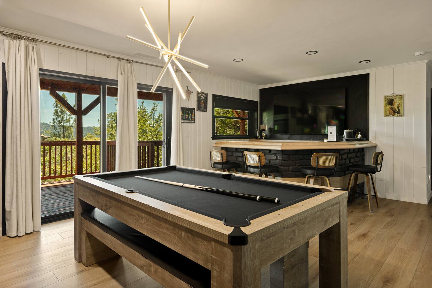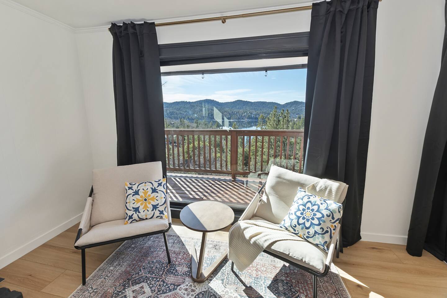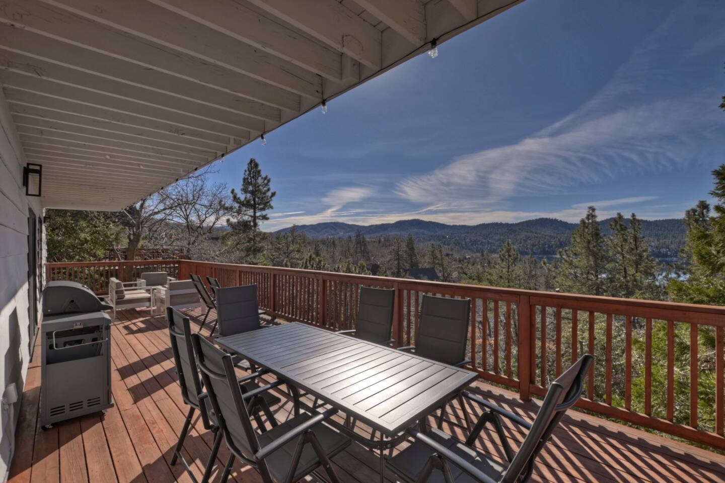 Enjoy spectacular lake views at this upscale 5-bedroom, 4-bath retreat! Renovated with a stunning kitchen, open living and dining, plus 3 decks with seating and lake views. Relax in the primary suite with a soaker tub and lake vistas. The game room features a pool/ping pong combo table, large TVs, and a bar. Perfect for a fun and relaxing Lake Arrowhead getaway!
