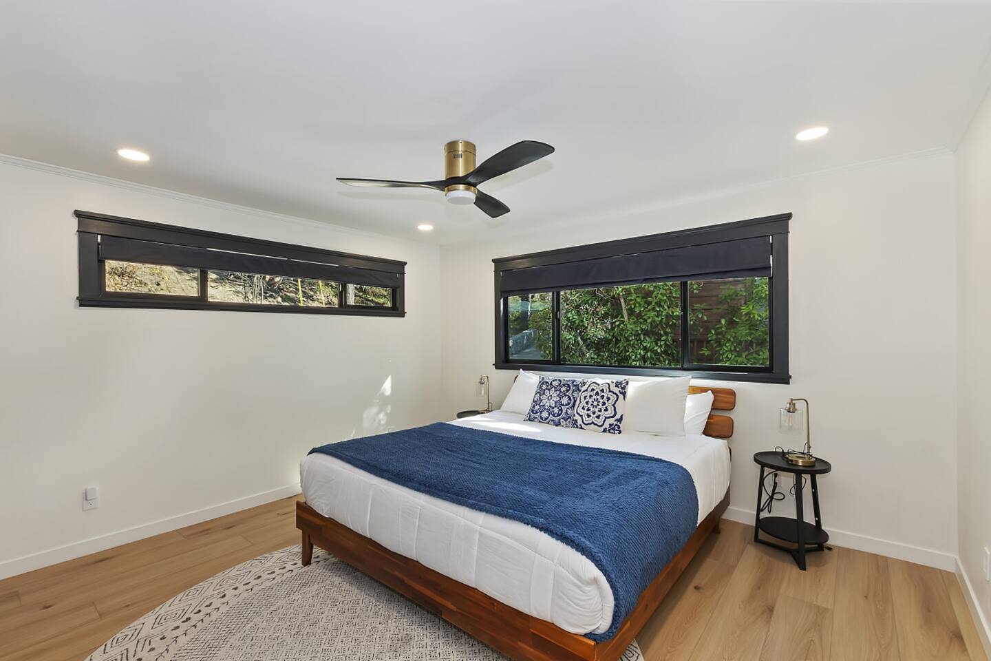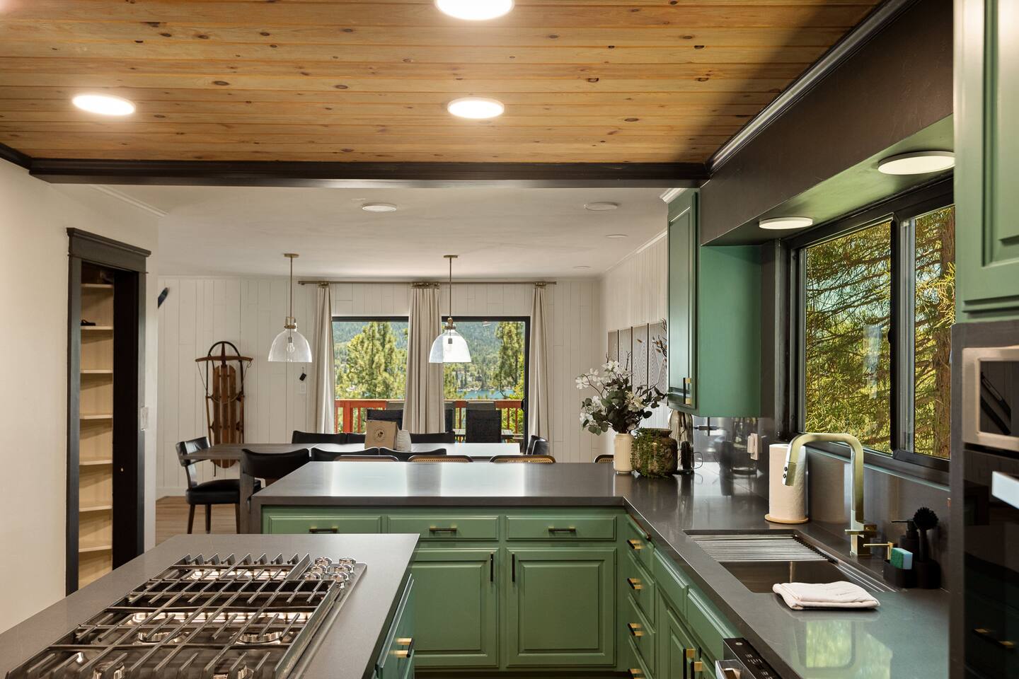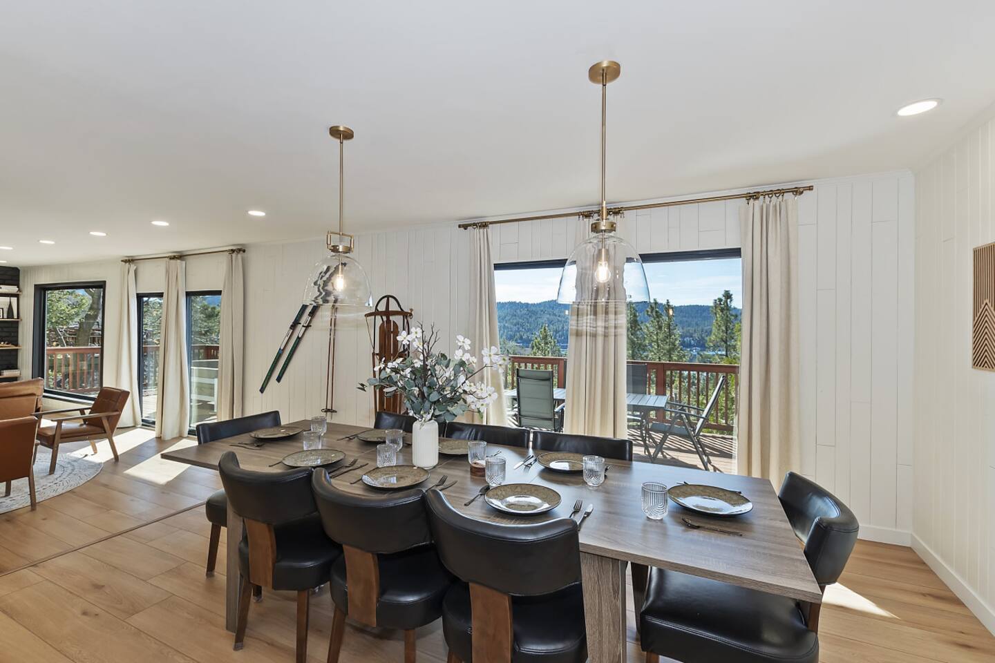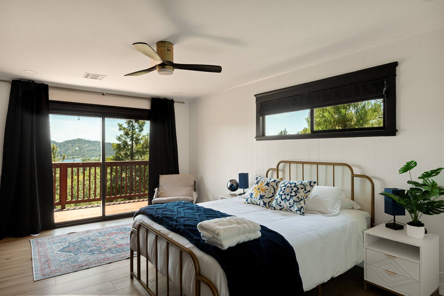 Enjoy spectacular lake views at this upscale 5-bedroom, 4-bath retreat! Renovated with a stunning kitchen, open living and dining, plus 3 decks with seating and lake views. Relax in the primary suite with a soaker tub and lake vistas. The game room features a pool/ping pong combo table, large TVs, and a bar. Perfect for a fun and relaxing Lake Arrowhead getaway!