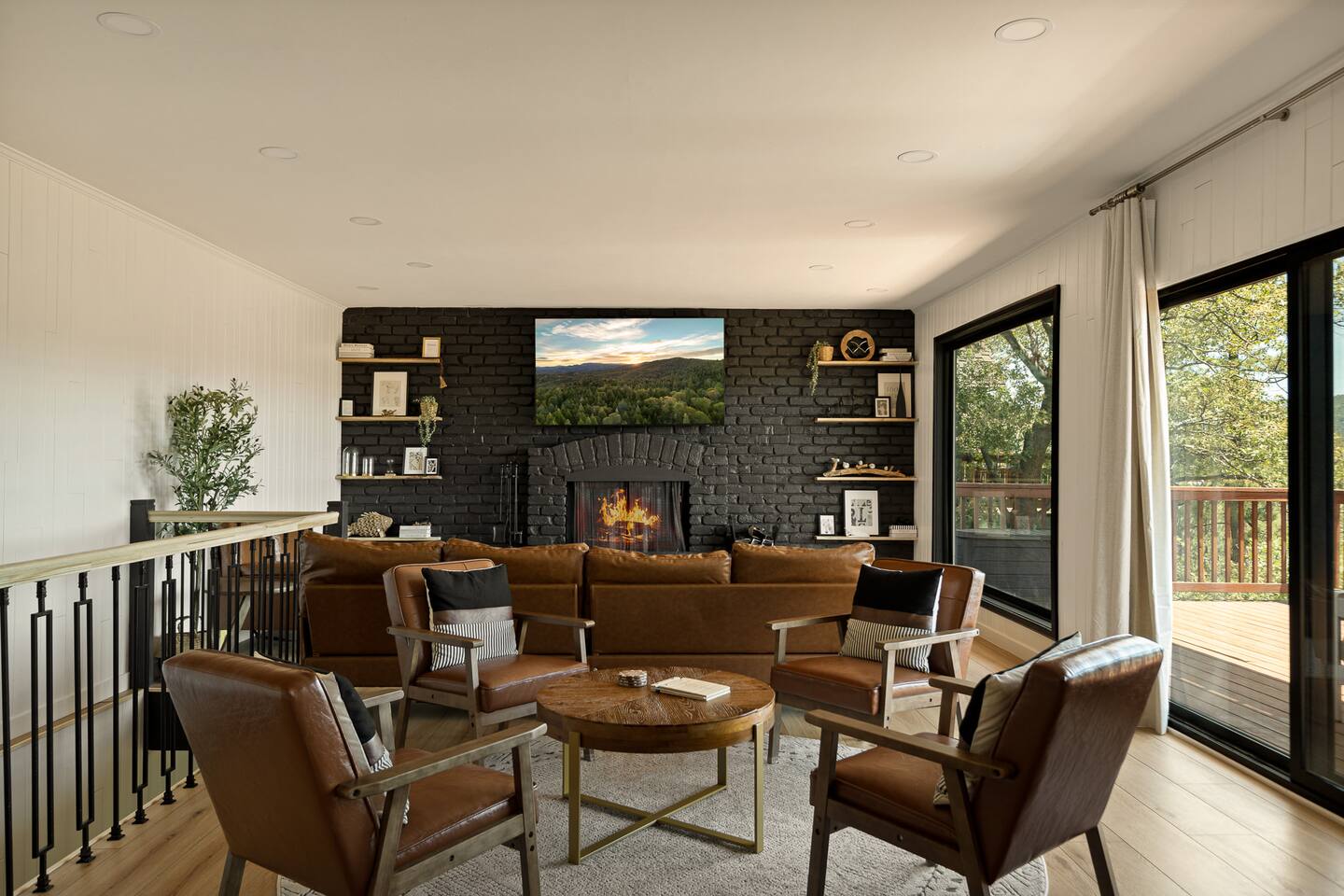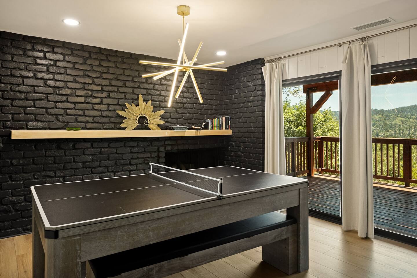 🏡 Welcome to Your Lakeview Retreat! Step inside to a bright, inviting living area with large windows showcasing stunning lake views 🌊. The modern design and cozy vibe make it the perfect spot to unwind. Gather around the gas fireplace 🔥 on cool evenings for relaxing moments together. 🎱 Game Room Fun No need to go out to have fun! The game room features a pool & ping pong table combo 🏓, a large TV 📺, and a custom bar 🍹—perfect for friendly competition and making memories. 🛏️ Bedrooms & Bathrooms Enjoy 5 beautifully furnished bedrooms with plenty of space to spread out. >The primary suite offers a king bed, private ensuite, and a soaker tub 🛁 with amazing lake views. >The other bedrooms include queen beds and twin bunk beds to fit your group comfortably. >There are 4 full bathrooms 🚿 (2 with soaker tubs), stocked with fresh towels and essentials for your convenience. 🍳 Kitchen & Dining The fully equipped kitchen boasts modern appliances and ample counter space for preparing everything from casual breakfasts to gourmet dinners. Enjoy meals inside at the dining table with a view or outside on the deck for alfresco dining 🍽️🌿. 🌅 Outdoor Spaces Relax and soak in the breathtaking lake views from the large decks ☕🌄 — perfect for morning coffee or evening unwind sessions. The spacious outdoor area invites you to gather around, enjoy nature, and make lasting memories.