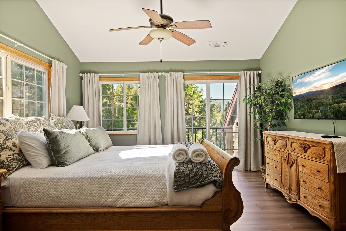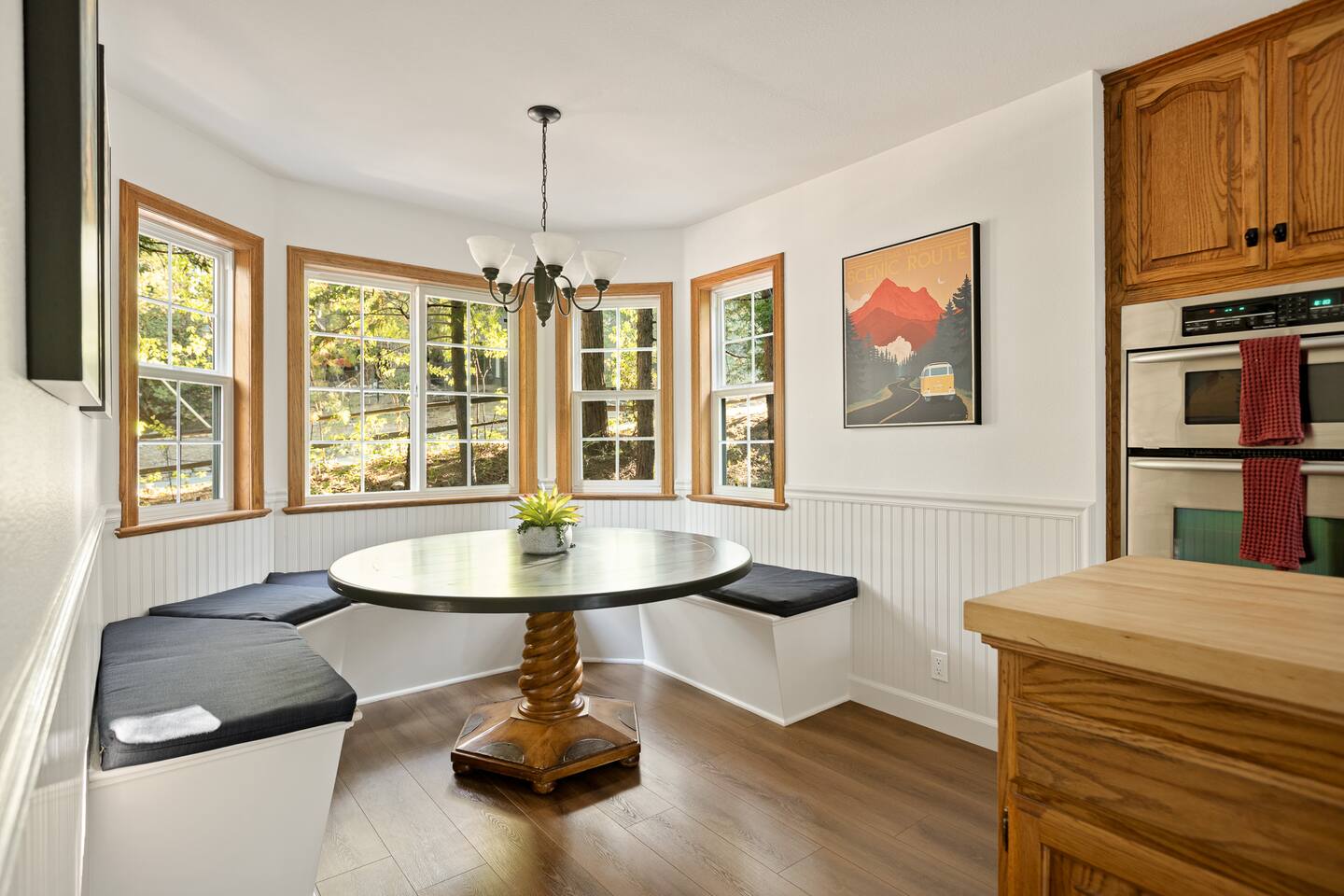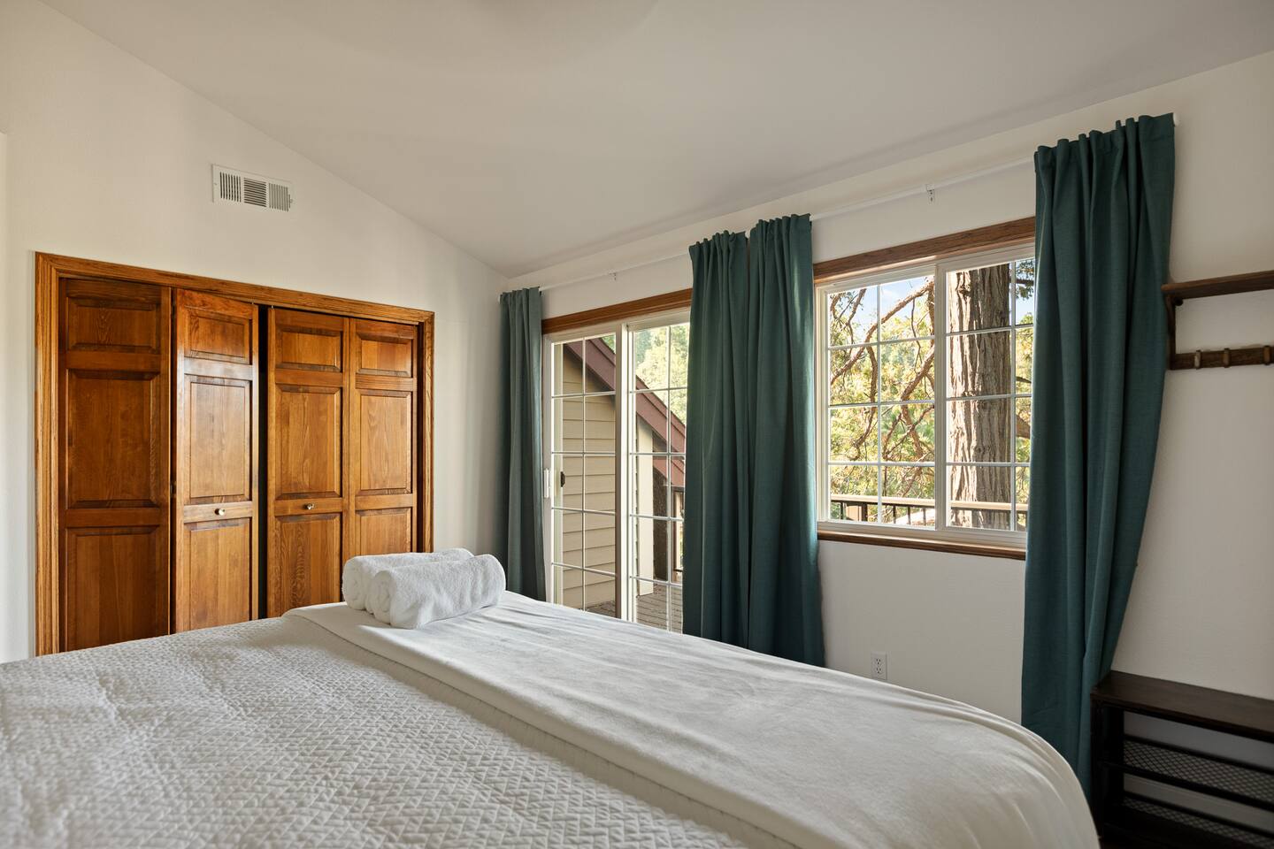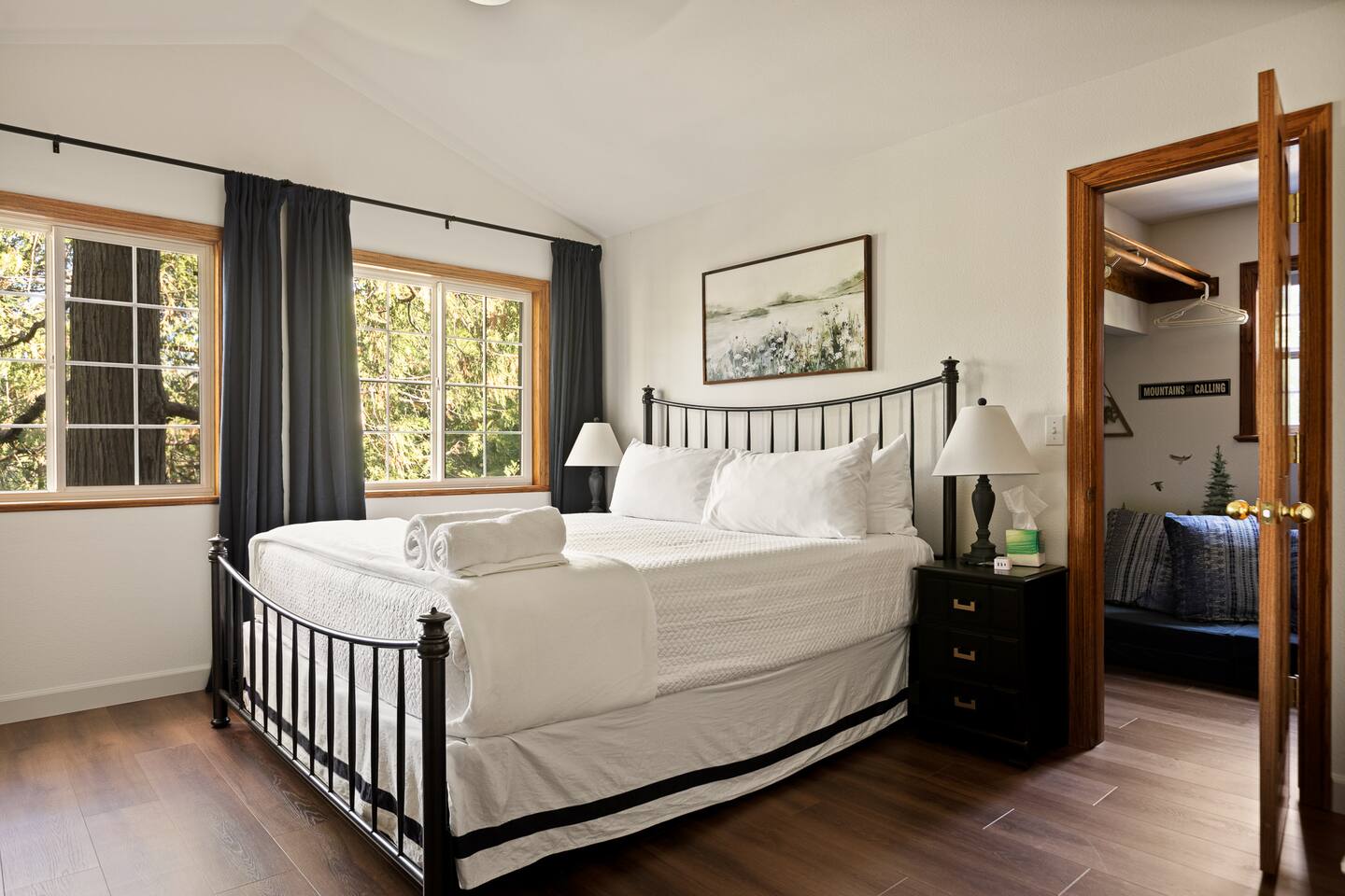 Classic cabin charm meets modern comfort across three levels of well-thought-out living spaces. ๐ Sleep & Comfort 4 total bedrooms + den and bunk room โ sleeps 10 comfortably Primary suite: King bed, walk-in closet, spa-like bath with soaking tub & walk-in shower Bedroom 2: King bed + private deck, perfect for morning coffee Bedroom 3: King bed + charming toddler โhideawayโ with fold-out beds Bedroom 4 (Lower level): Twin-over-twin bunks + full bathroom Den (Main level): Murphy bed + fireplace for extra sleeping space ๐ Living Spaces Vaulted-ceiling living room with electric fireplace + LG Smart TVs Open-concept dining area and breakfast nook Fully stocked kitchen for group cooking and family meals Office area perfect for remote work or study Laundry room with washer and dryer Direct access to garage for guest use ๐ฎ Entertainment & Extras Game Room: Large Smart TV, cozy seating, stylish decor โWhisky Denโ: Themed hangout with a poker/card table โ BYO whisky! Hide-and-seek approved toddler hideaway nook upstairs Strong Wi-Fi throughout the home ๐ฒ Outdoor Features Multiple decks with forest views BBQ grill + outdoor seating for relaxed meals Level-entry from driveway โ no stairs required for access Room for up to 4 cars parked on-site ๐ซ Good to Know No pets allowed Quiet hours and respect for neighbors are appreciated Perfect for families, remote workers, or small friend groups