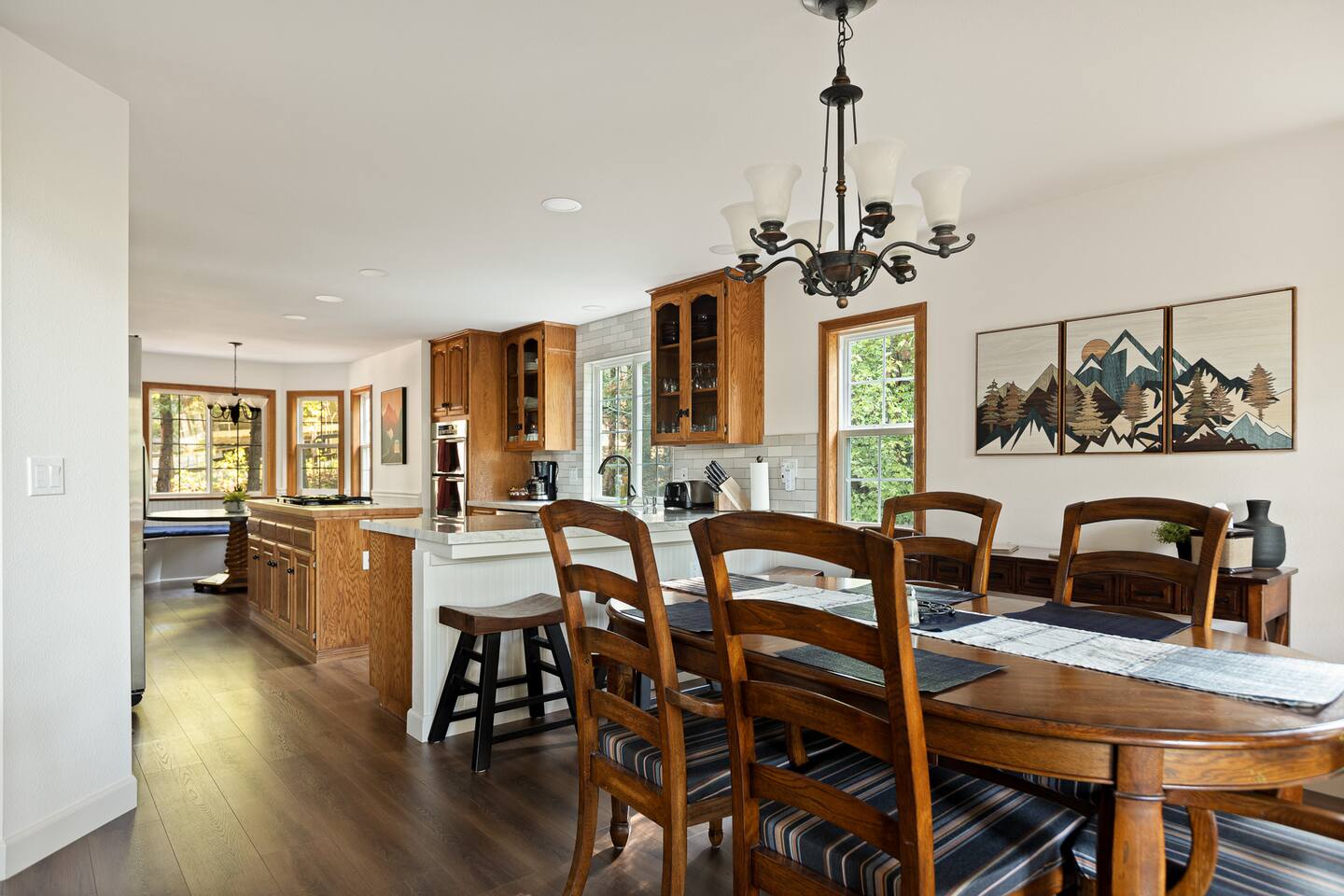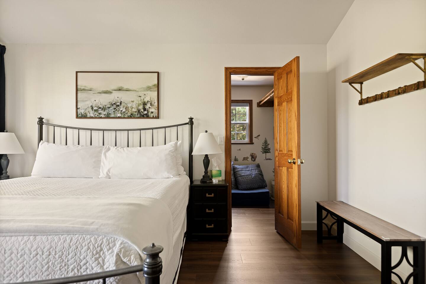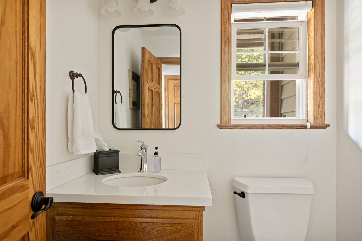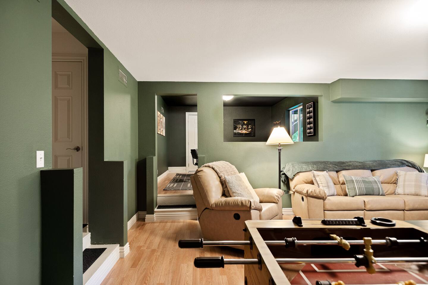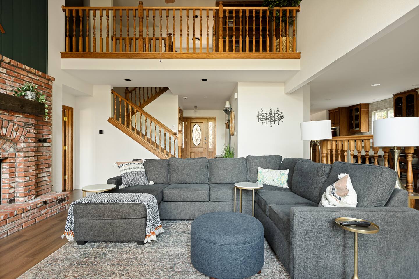 Classic cabin charm meets modern comfort across three levels of well-thought-out living spaces. ๐ Sleep & Comfort 4 total bedrooms + den and bunk room โ sleeps 10 comfortably Primary suite: King bed, walk-in closet, spa-like bath with soaking tub & walk-in shower Bedroom 2: King bed + private deck, perfect for morning coffee Bedroom 3: King bed + charming toddler โhideawayโ with fold-out beds Bedroom 4 (Lower level): Twin-over-twin bunks + full bathroom Den (Main level): Murphy bed + fireplace for extra sleeping space ๐ Living Spaces Vaulted-ceiling living room with electric fireplace + LG Smart TVs Open-concept dining area and breakfast nook Fully stocked kitchen for group cooking and family meals Office area perfect for remote work or study Laundry room with washer and dryer Direct access to garage for guest use ๐ฎ Entertainment & Extras Game Room: Large Smart TV, cozy seating, stylish decor โWhisky Denโ: Themed hangout with a poker/card table โ BYO whisky! Hide-and-seek approved toddler hideaway nook upstairs Strong Wi-Fi throughout the home ๐ฒ Outdoor Features Multiple decks with forest views BBQ grill + outdoor seating for relaxed meals Level-entry from driveway โ no stairs required for access Room for up to 4 cars parked on-site ๐ซ Good to Know No pets allowed Quiet hours and respect for neighbors are appreciated Perfect for families, remote workers, or small friend groups