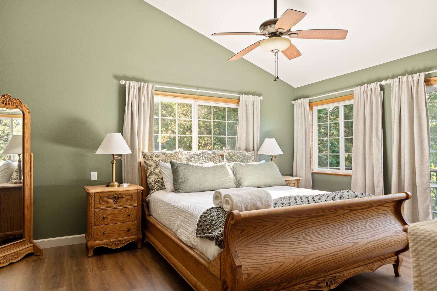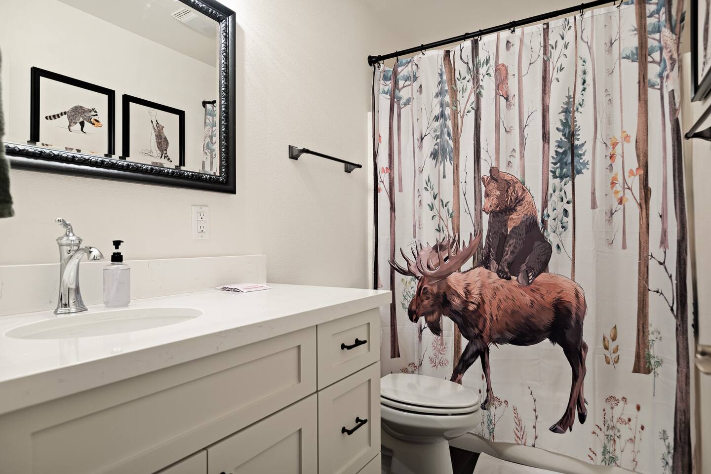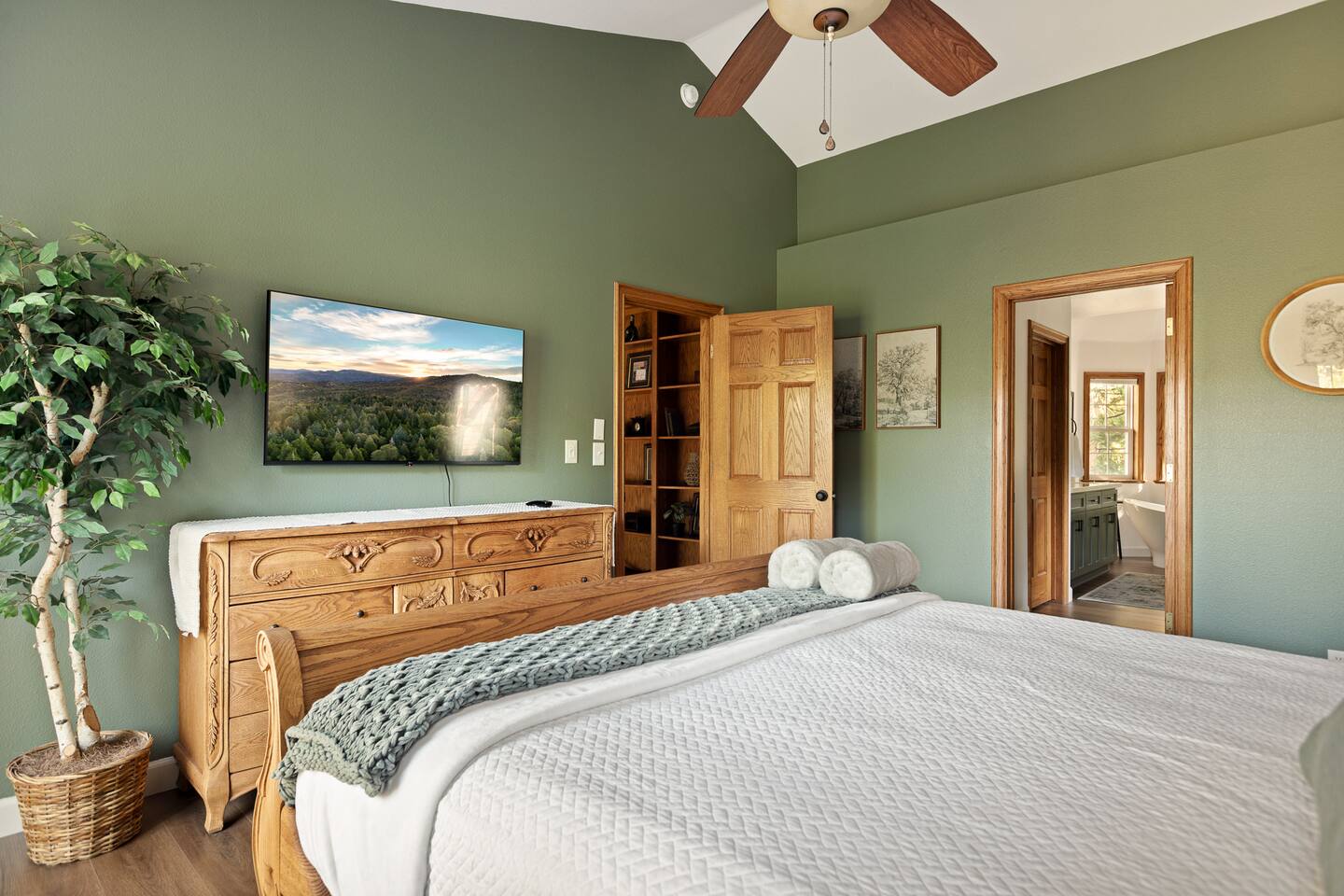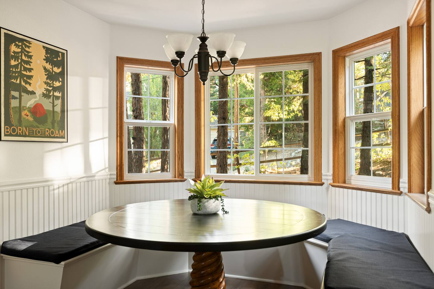 Classic cabin charm meets modern comfort across three levels of well-thought-out living spaces. ๐ Sleep & Comfort 4 total bedrooms + den and bunk room โ sleeps 10 comfortably Primary suite: King bed, walk-in closet, spa-like bath with soaking tub & walk-in shower Bedroom 2: King bed + private deck, perfect for morning coffee Bedroom 3: King bed + charming toddler โhideawayโ with fold-out beds Bedroom 4 (Lower level): Twin-over-twin bunks + full bathroom Den (Main level): Murphy bed + fireplace for extra sleeping space ๐ Living Spaces Vaulted-ceiling living room with electric fireplace + LG Smart TVs Open-concept dining area and breakfast nook Fully stocked kitchen for group cooking and family meals Office area perfect for remote work or study Laundry room with washer and dryer Direct access to garage for guest use ๐ฎ Entertainment & Extras Game Room: Large Smart TV, cozy seating, stylish decor โWhisky Denโ: Themed hangout with a poker/card table โ BYO whisky! Hide-and-seek approved toddler hideaway nook upstairs Strong Wi-Fi throughout the home ๐ฒ Outdoor Features Multiple decks with forest views BBQ grill + outdoor seating for relaxed meals Level-entry from driveway โ no stairs required for access Room for up to 4 cars parked on-site ๐ซ Good to Know No pets allowed Quiet hours and respect for neighbors are appreciated Perfect for families, remote workers, or small friend groups