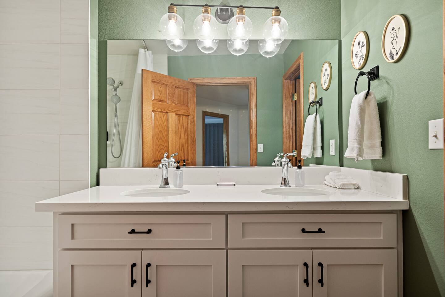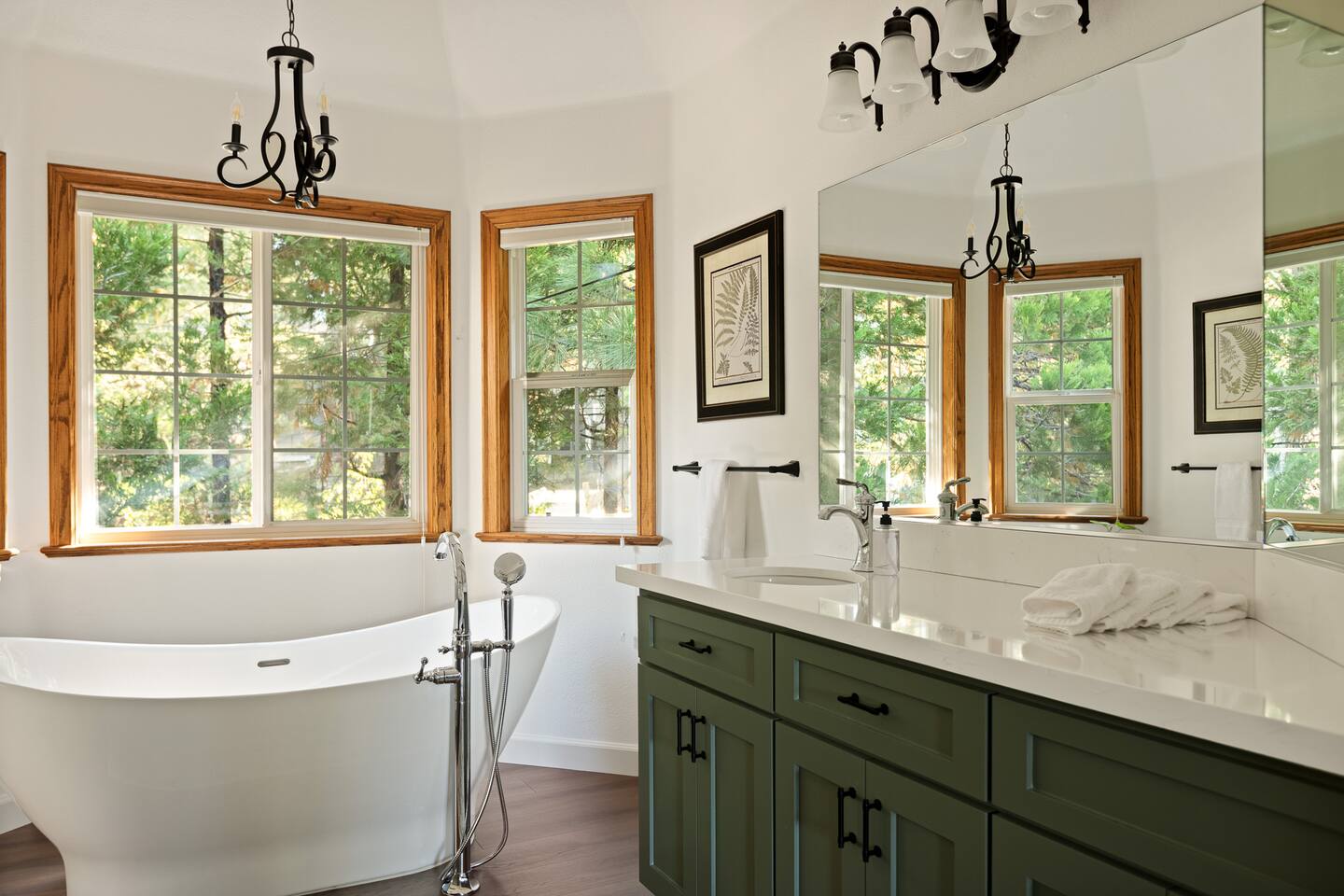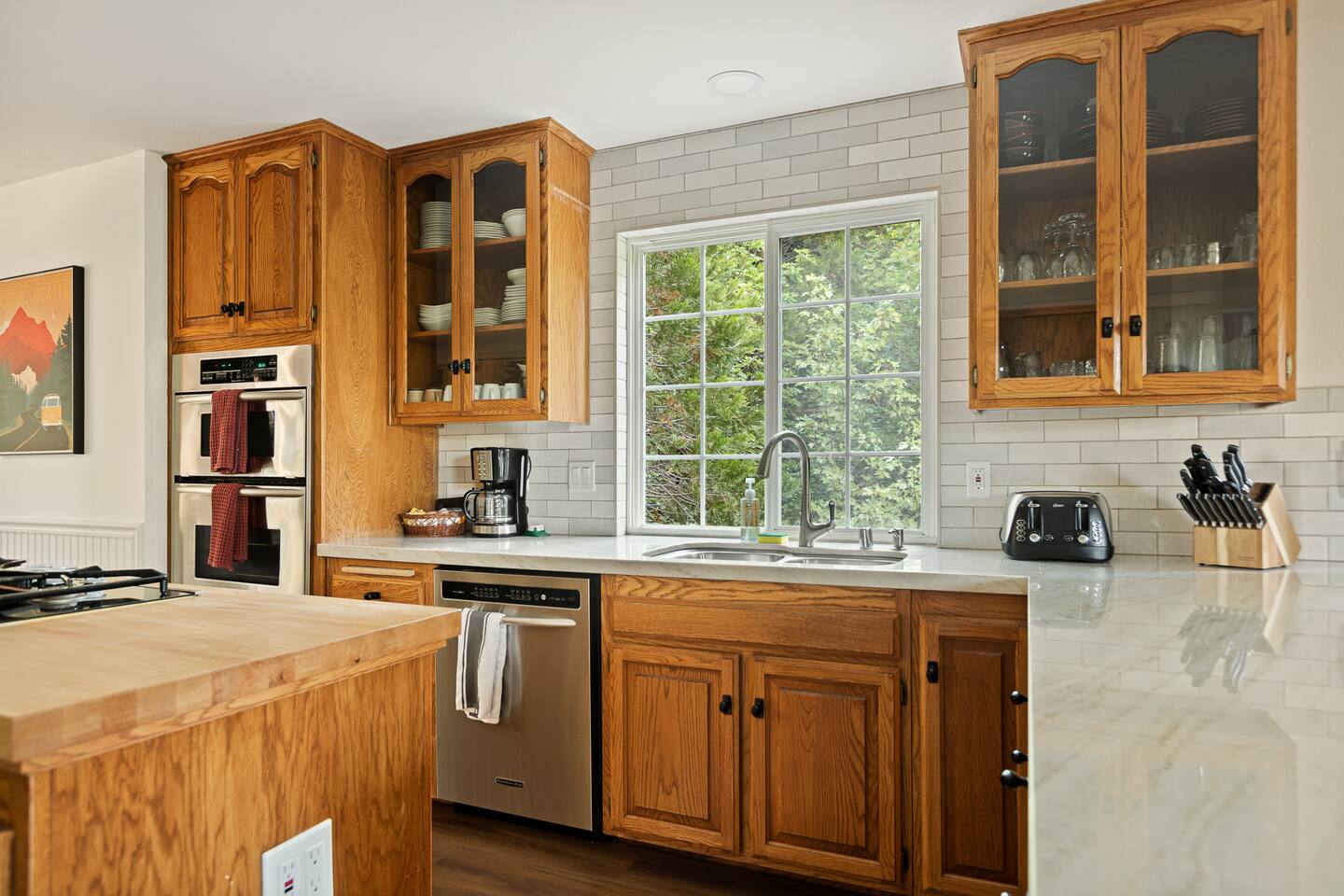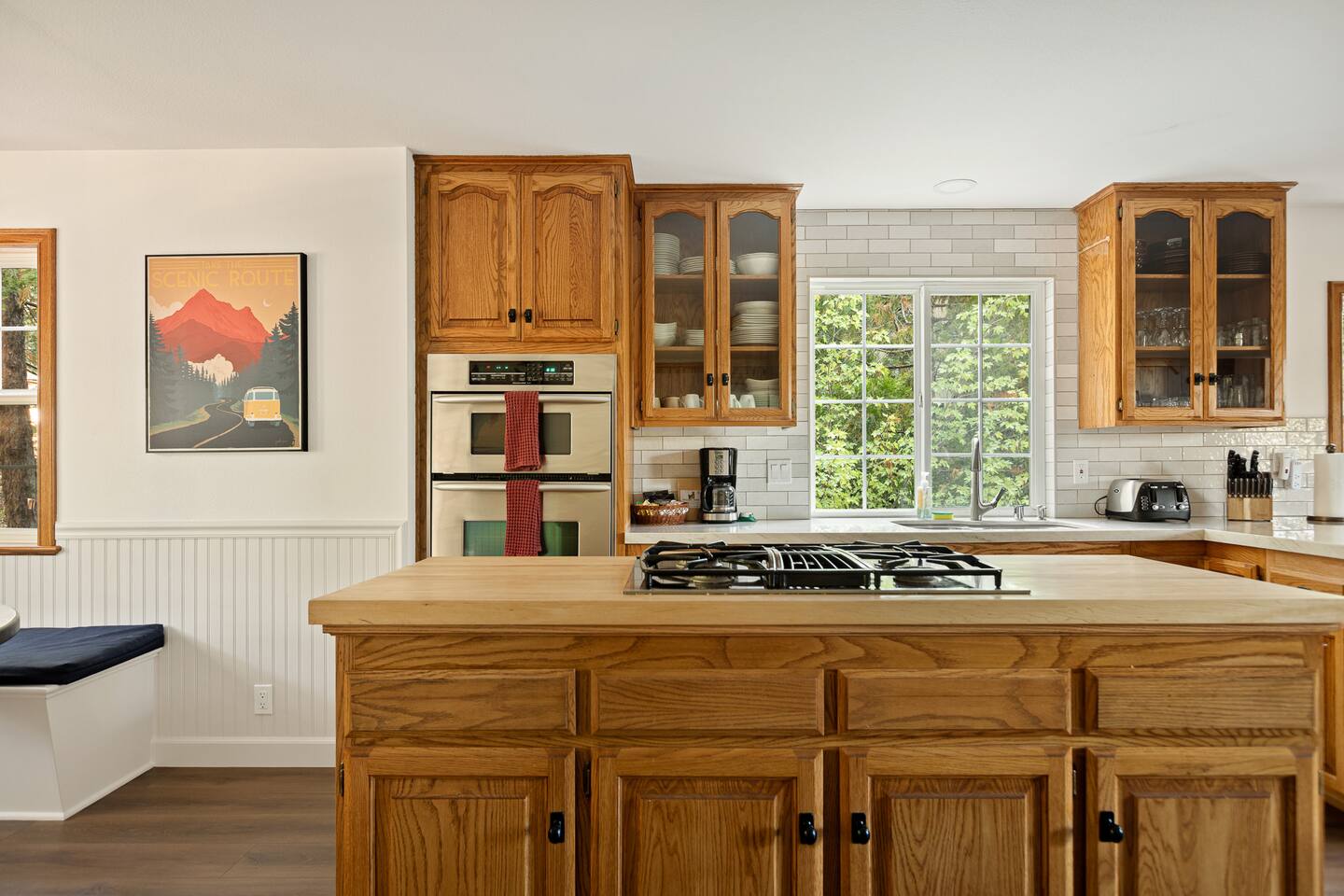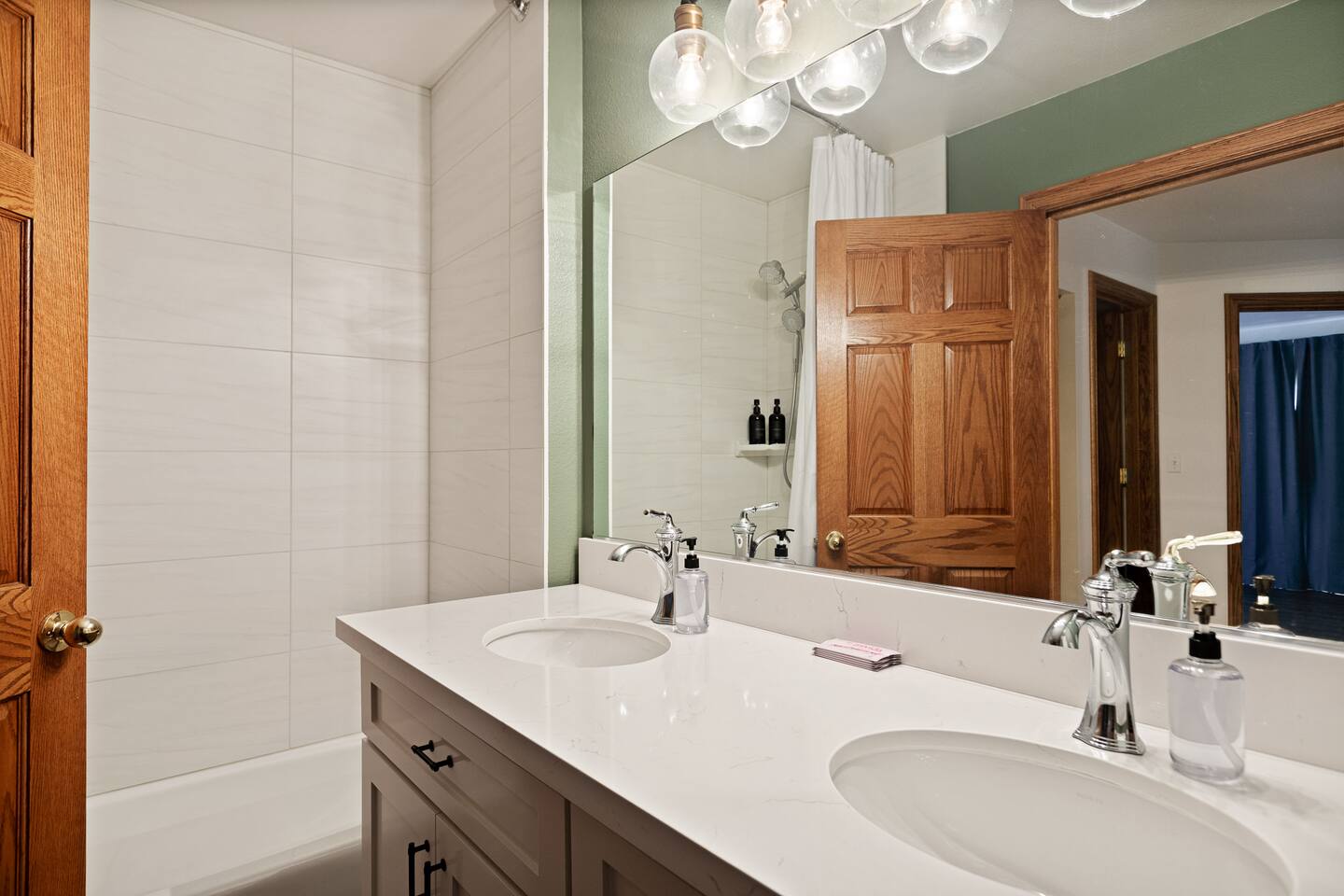 Classic cabin charm meets modern comfort across three levels of well-thought-out living spaces. ๐ Sleep & Comfort 4 total bedrooms + den and bunk room โ sleeps 10 comfortably Primary suite: King bed, walk-in closet, spa-like bath with soaking tub & walk-in shower Bedroom 2: King bed + private deck, perfect for morning coffee Bedroom 3: King bed + charming toddler โhideawayโ with fold-out beds Bedroom 4 (Lower level): Twin-over-twin bunks + full bathroom Den (Main level): Murphy bed + fireplace for extra sleeping space ๐ Living Spaces Vaulted-ceiling living room with electric fireplace + LG Smart TVs Open-concept dining area and breakfast nook Fully stocked kitchen for group cooking and family meals Office area perfect for remote work or study Laundry room with washer and dryer Direct access to garage for guest use ๐ฎ Entertainment & Extras Game Room: Large Smart TV, cozy seating, stylish decor โWhisky Denโ: Themed hangout with a poker/card table โ BYO whisky! Hide-and-seek approved toddler hideaway nook upstairs Strong Wi-Fi throughout the home ๐ฒ Outdoor Features Multiple decks with forest views BBQ grill + outdoor seating for relaxed meals Level-entry from driveway โ no stairs required for access Room for up to 4 cars parked on-site ๐ซ Good to Know No pets allowed Quiet hours and respect for neighbors are appreciated Perfect for families, remote workers, or small friend groups