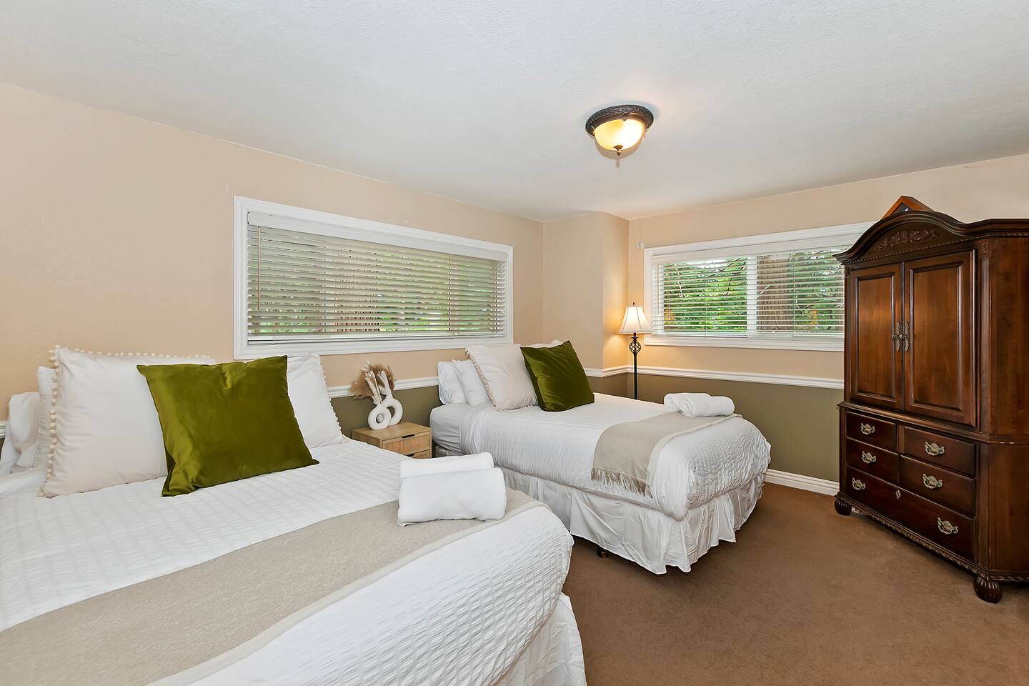 π²β°οΈ Located in beautiful Lake Arrowhead, this spacious 3-bedroom retreat comfortably hosts up to 10 guests β perfect for family gatherings, friend trips, or a peaceful seasonal escape. Interior Features: π₯ Living Area: Cozy up by the fireplace in the open-concept living room, perfect for relaxing after a day of mountain adventures. π³ Kitchen & Dining: Fully equipped kitchen with everything you need to cook and gather for meals together. ποΈ Design: Thoughtfully decorated with warm, mountain-style touches for a relaxing ambiance. Sleeping Arrangements: ποΈ Bedroom 1 (Main Level): Two Queen beds + full bathroom ποΈ Bedroom 2 (Upper Level): One California King bed ποΈ Bedroom 3 (Upper Level): Two Queen beds π Bathrooms: Two full bathrooms β one on each level for added convenience Comfort & Convenience: βοΈ Air Conditioning & Heating: Stay comfortable in every season with AC and heating π§Ί Laundry: Washer and dryer available for guest use π« Pets: Sorry, no pets allowed due to severe allergies π Owner Closets: Some closets are locked for owner storage Outdoor Amenities: π Oversized Deck: Enjoy lounging, dining, or snuggling under the stars with heaters and comfy seating π₯ Gas Firepit & BBQ: Perfect for chilly nights and al fresco dinners π Garage Game Space: Ping pong table and room for fun π ΏοΈ Parking: Room for up to 4 cars in the driveway (no street parking allowed) Location Highlights: ποΈ Nearby Attractions: Close to Lake Arrowhead Village, Lake Gregory, SkyPark at Santaβs Village, and Snow Valley Ski Resort πΆ Outdoor Fun: Enjoy hiking, lake days, and snow-filled adventures β just minutes away β οΈ NOTE: The driveway is steep and may not suit low-profile vehicles. Chains are recommended in winter; no refunds for weather-related conditions.