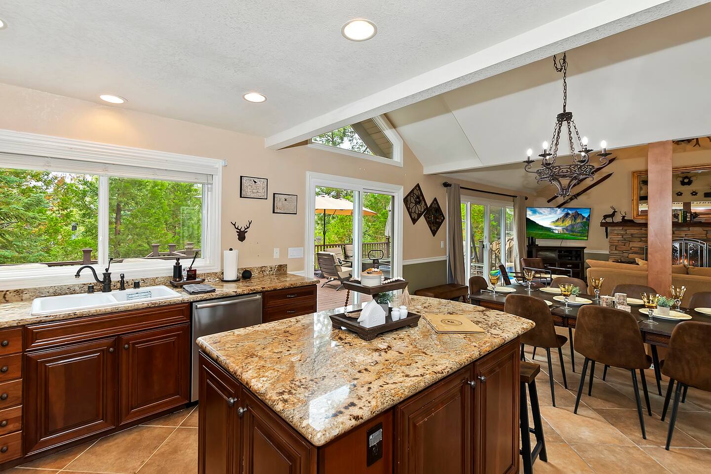 Set in the beautiful Lake Arrowhead and 10mins from Lake Gregory, Sky Park and Snow Valley this is truly an escape fro the city in only 90 min from LA. Quiet neighborhood, with Mountain View, tree scape yard. The Lake Arrowhead Village offers great summer concerts, dining and amazing views of the lake. Great vintage shopping or go for a hike on one of the many trails. Sky park has lots of fun for all ages with anything from iceskating, beer festivals to mountain bike riding. The mountains are calling you!