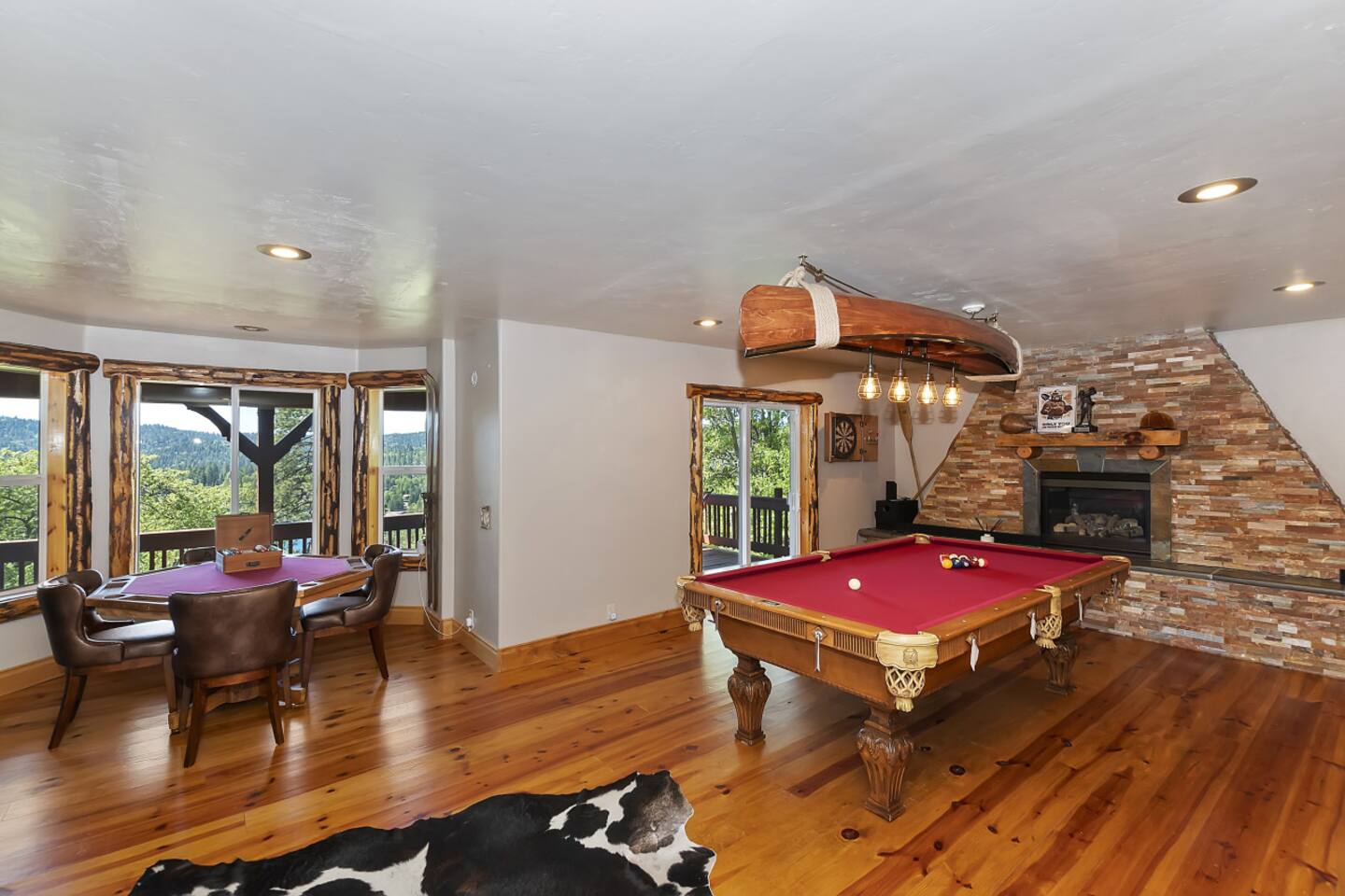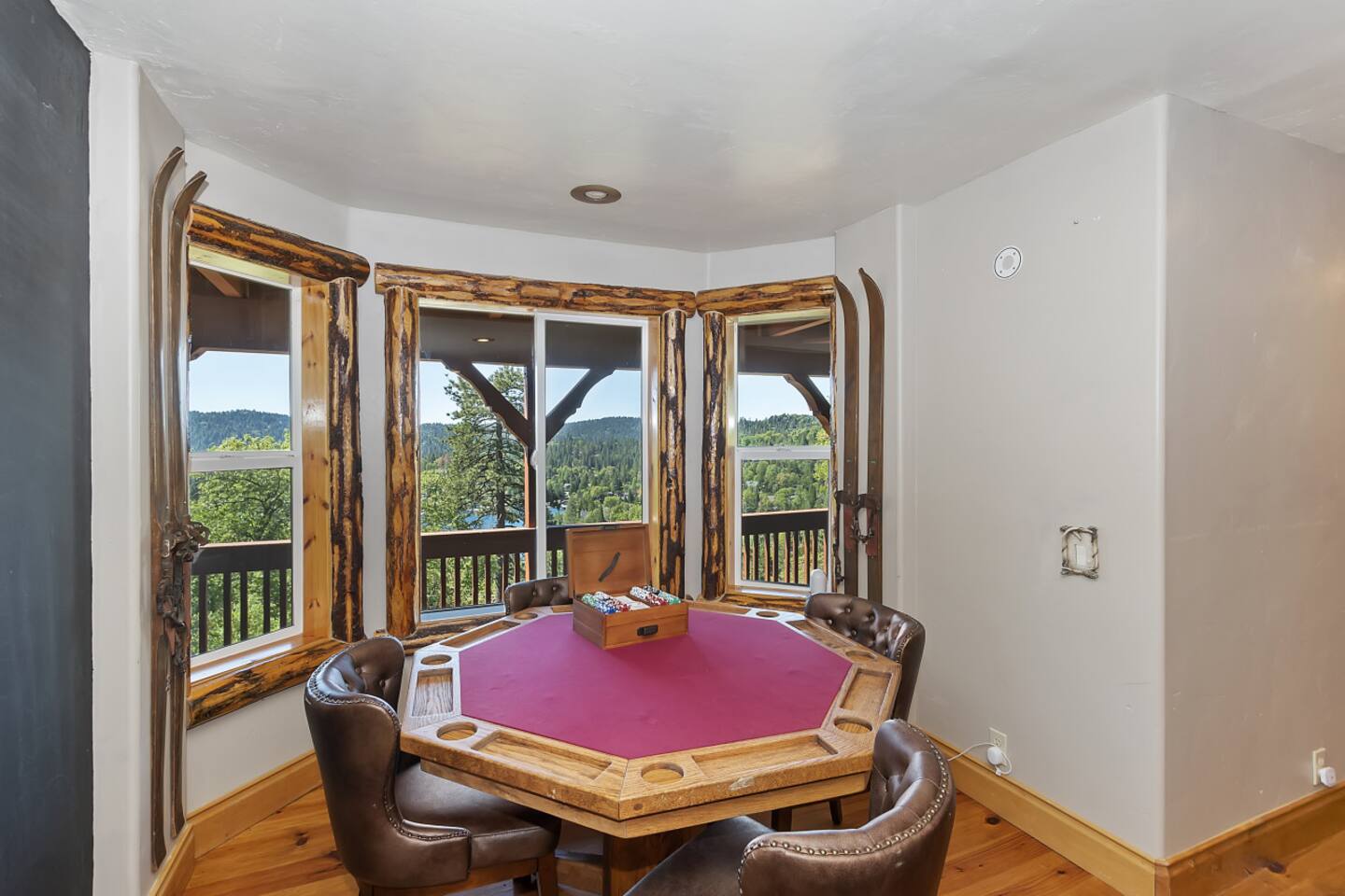 Unwind at this beautiful lodge overlooking the lake, just 10 minutes from Lake Arrowhead Village. Thoughtfully designed for families and groups, the home features: 🛏 5 Bedrooms: Includes 2 private suites and 3 additional bedrooms for maximum comfort 🔥 Cozy Living Area: Warm up by the fireplace, watch a movie, or enjoy lake views from the large windows 🍽 Fully Equipped Kitchen & Dining: Cook up a feast in the stocked kitchen and dine together at the spacious table 🎮 Game Room Fun: Enjoy a pool table, poker table, and classic arcade games—perfect for guests of all ages 🧸 Kids’ Room: Stocked with books and toys to keep little ones entertained 🌅 Outdoor Living: Step out onto the deck for lake views, grilling, and al fresco dining. Unwind in the hammock while soaking in the mountain air Guest Access Guests have full access to the entire home, except for one locked storage area. Whether you’re here to relax, play, or explore, Grand Luna Lodge offers the perfect blend of comfort, space, and mountain charm.