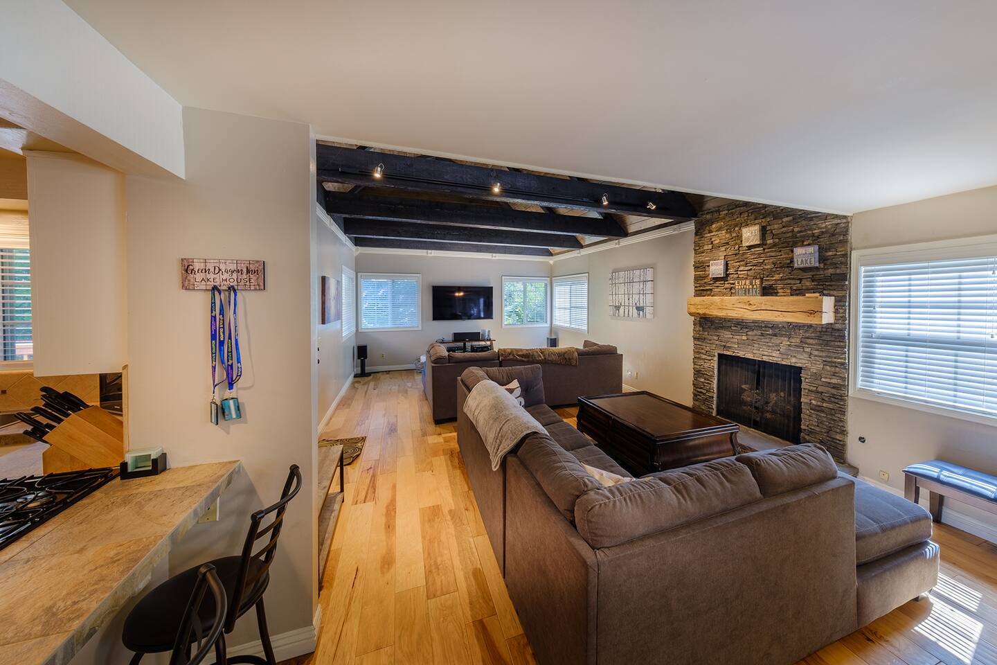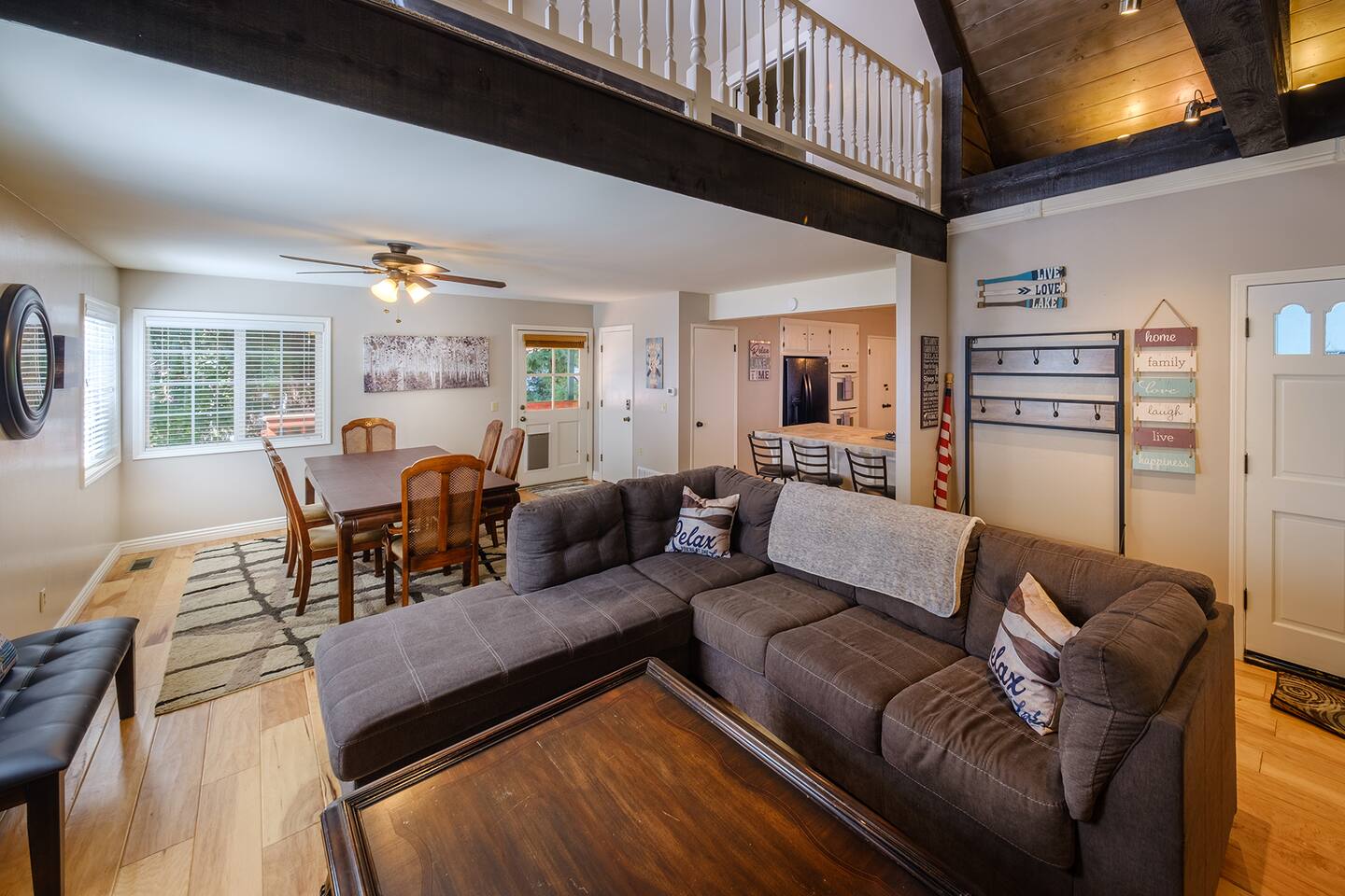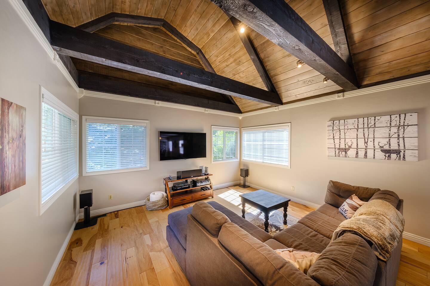 Located right off the highway, this home is around the corner from the local town of Cedar Glen where you can access restaurants, a small grocery store, and a gas station. Cedar Glen Inn and the Malt Shop are two of our well-loved local dining establishments, and are located less than a mile from the Dragon's Den! This is a full-time neighborhood with full-time residents. We do ask that the quiet hours are followed.