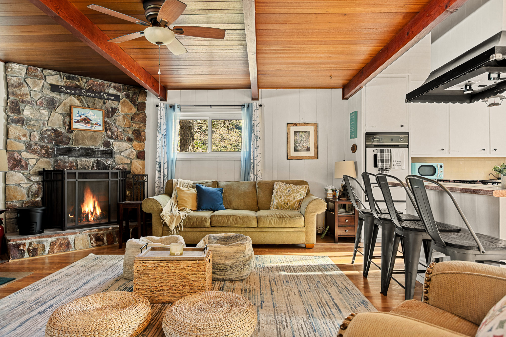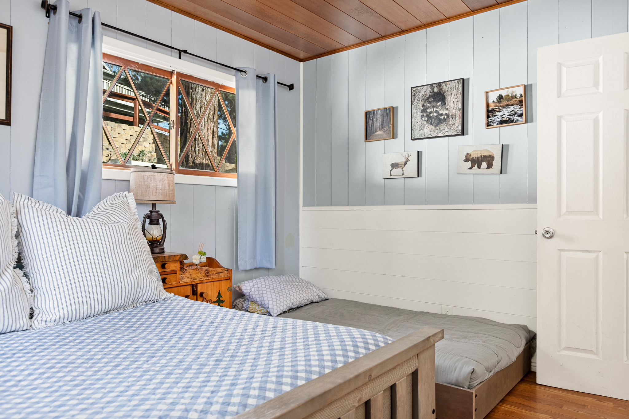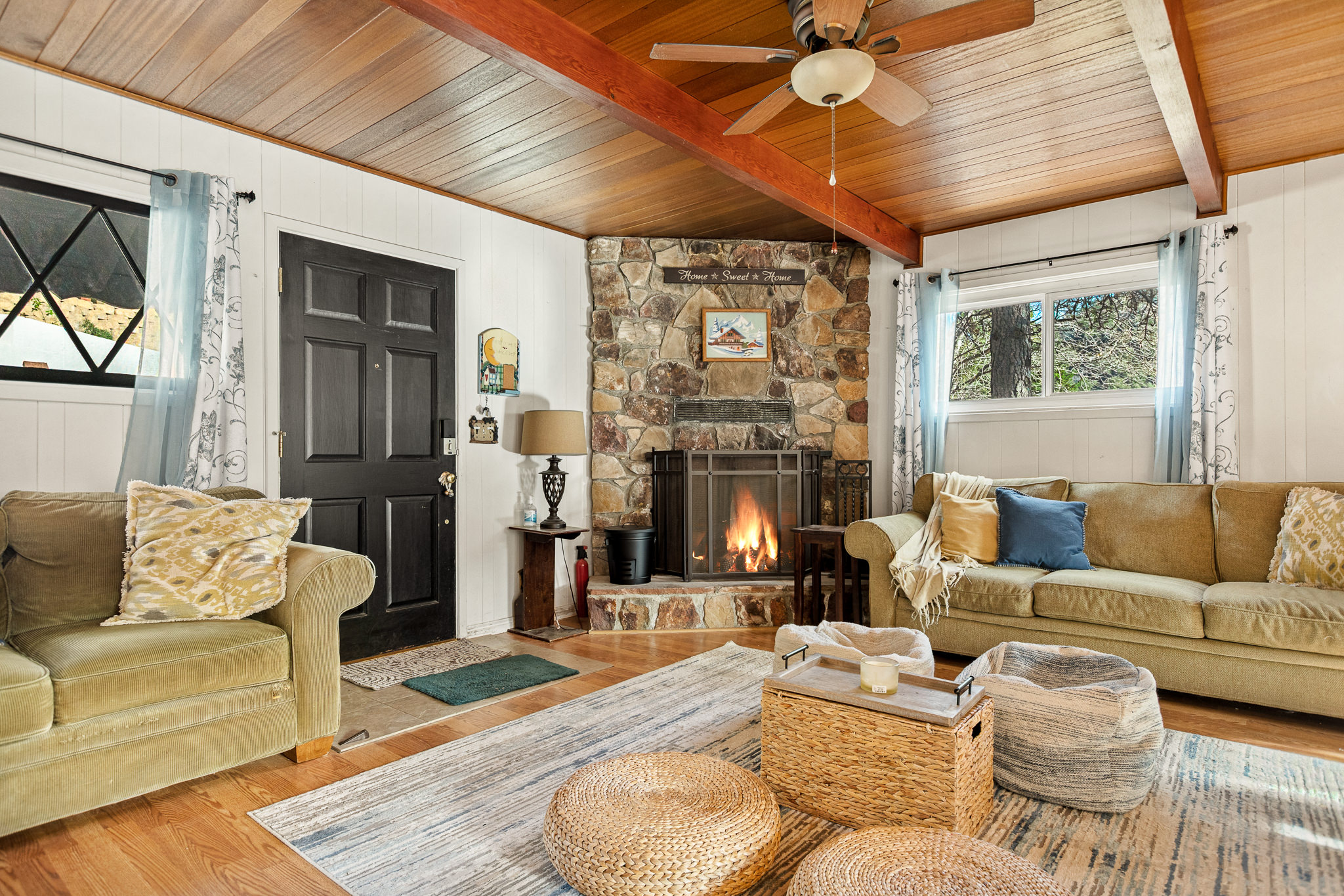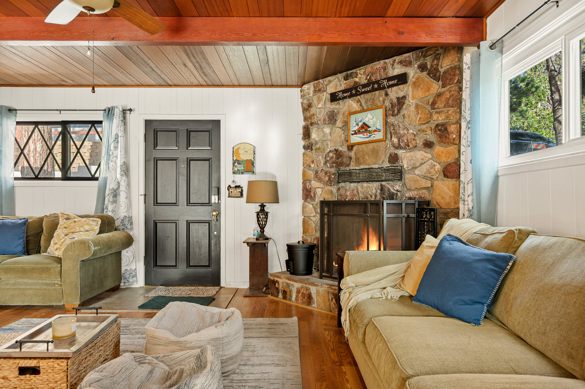🛏️ Interior This intimate and comfortable cottage features: - 2 bedrooms & 1 full bathroom — perfect for couples, small families, or friends. - Open floorplan with a welcoming living area and fireplace, making it a great space to relax after your day in the mountains. - Sunny deck off the living room, great for morning coffee or sunset views. 🌲 Outdoor Enjoyment - Large outdoor firepit area — perfect for gathering, roasting s’mores, or cozy evenings under the stars. - Spacious lot with generous space between neighbors for extra privacy and a peaceful, natural setting. - Ample parking — plenty of room for guests and vehicles. 📍 Location Highlights *Walkable to Lake Gregory — enjoy lakeside trails, swimming, fishing, and scenic views just a short stroll from the cottage. *Close to local restaurants, markets, hiking trails, and outdoor activities. Crestline is the perfect mix of quiet mountain living and access to adventure. *Easy access to nearby attractions like Lake Arrowhead and Rim of the World scenic routes. 🧡 Why Guests Love It This quaint crestline cottage is perfect for renters who want: ✔ A cozy, authentic mountain experience ✔ A walkable location to Lake Gregory ✔ Plenty of outdoor space and peace & quiet ✔ A relaxed home-away-from-home feel
