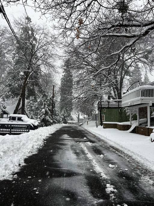 Parking is dedicated to the driveway for 3 vehicles. PER COUNTY CODE THERE IS NO STREET PARKING PERMITTED. We do not offer a refund for inclement weather, road closures, or acts of nature. Chains are advised during winter or snow conditions. Some homes are suggested for 4X4 or AWD only. Check Caltrans for road conditions. Lake Arrowhead is a private lake and does not allow STR access to the water -Lake Gregory allows swimming and many other water activities
