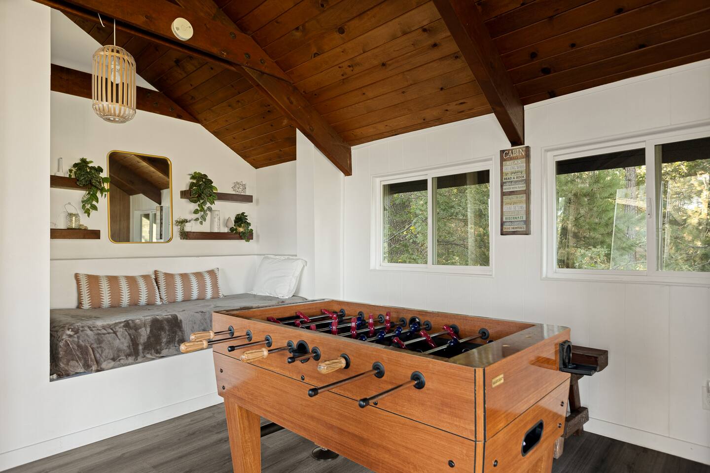 Welcome to the Quiet Mountain Cabin! ๐๏ธ 5 bedrooms โ sleeps up to 10 guests ๐ฎ Game room with family-friendly entertainment ๐ฅ Cozy living area with fireplace โ๏ธ Air conditioning for year-round comfort ๐ณ Fully equipped kitchen for home-cooked meals ๐ฒ Outdoor deck with BBQ grill ๐พ Pet-friendly โ bring your furry friends ๐ Close to Lake Arrowhead Village & hiking trails